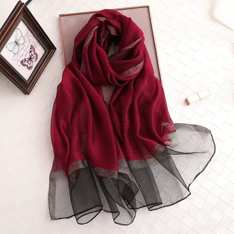솔리드 컬러 올 매치 여성의 긴 실크 스카프 모조 실크 골드 스팽글 목도리 스카프 하이 엔드 센스 도매