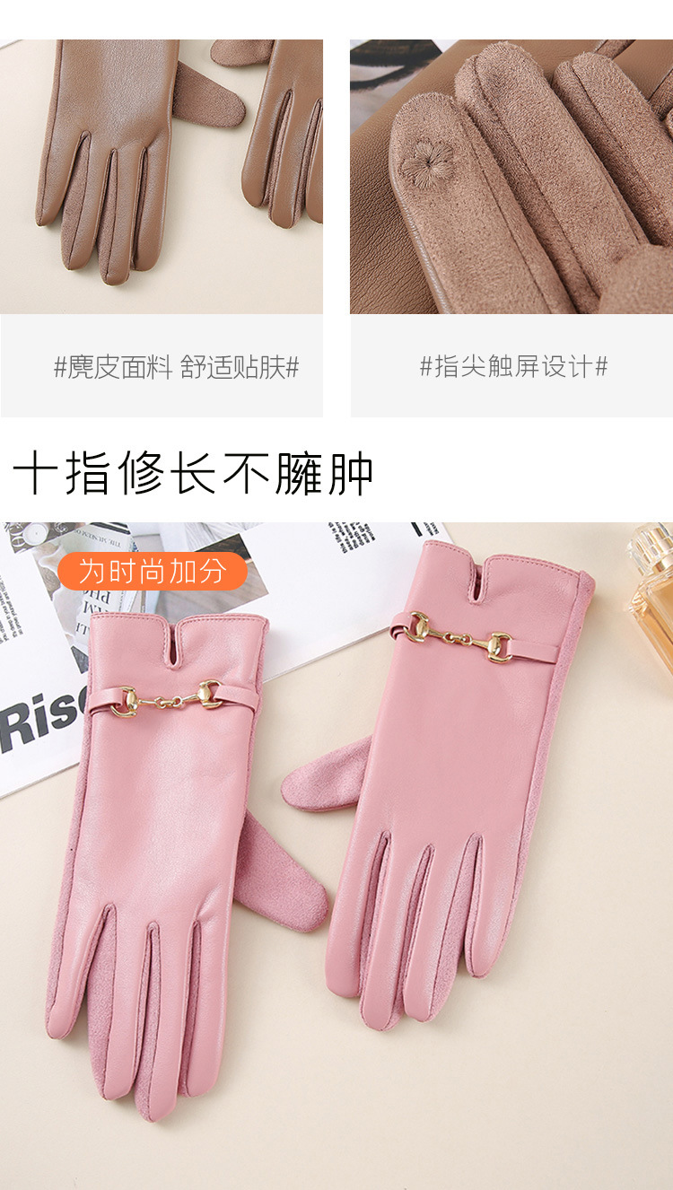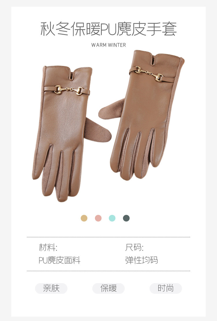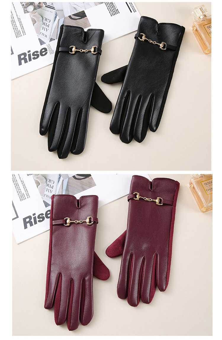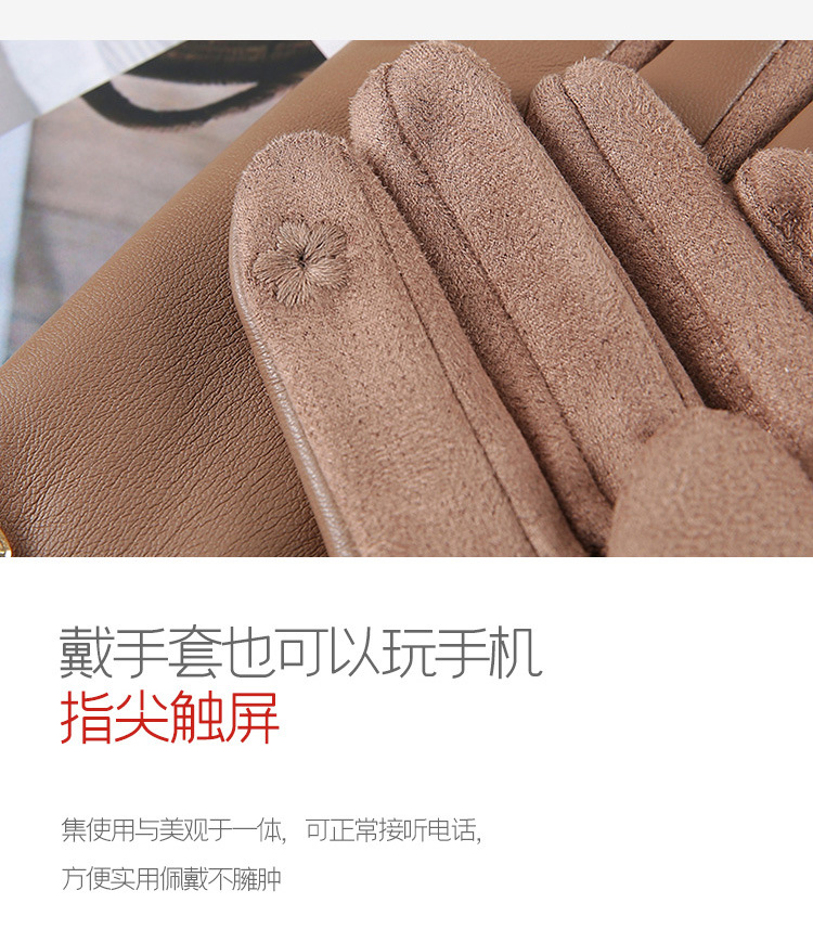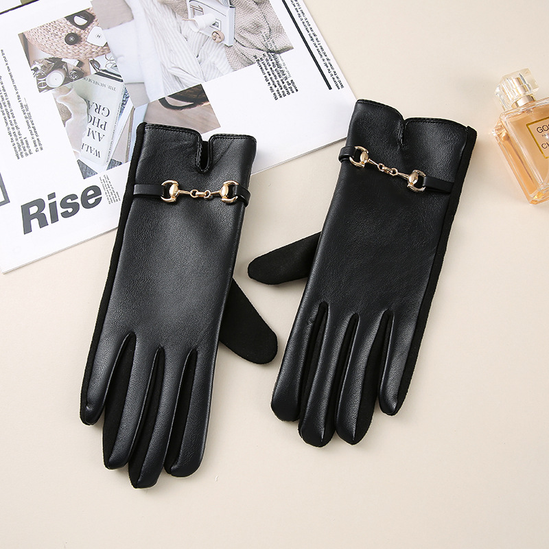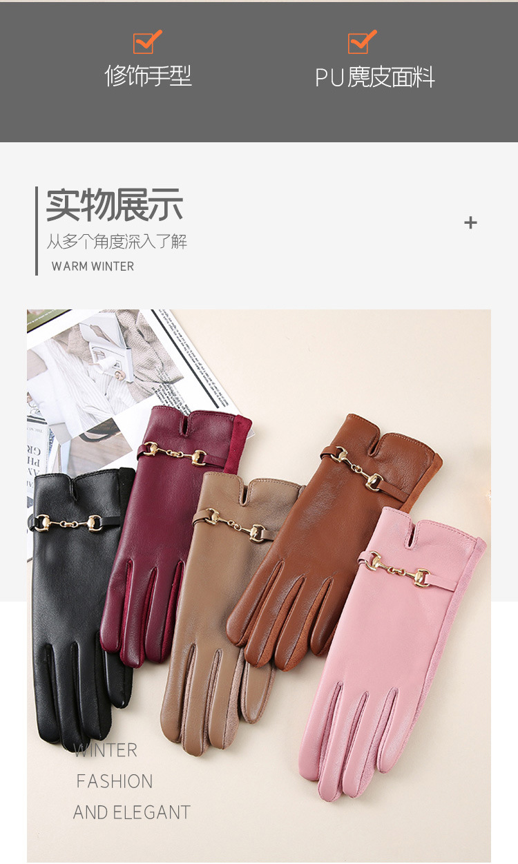 새로운 한국 스타일 가을과 겨울 PU 가죽 장갑 따뜻한 여성의 운전 라이드 터치 스크린 방풍 기모 체인 핑거 장갑