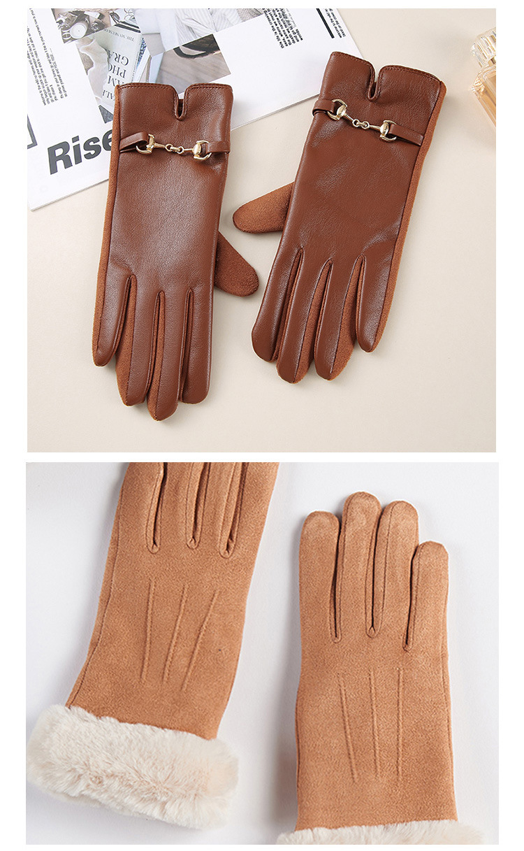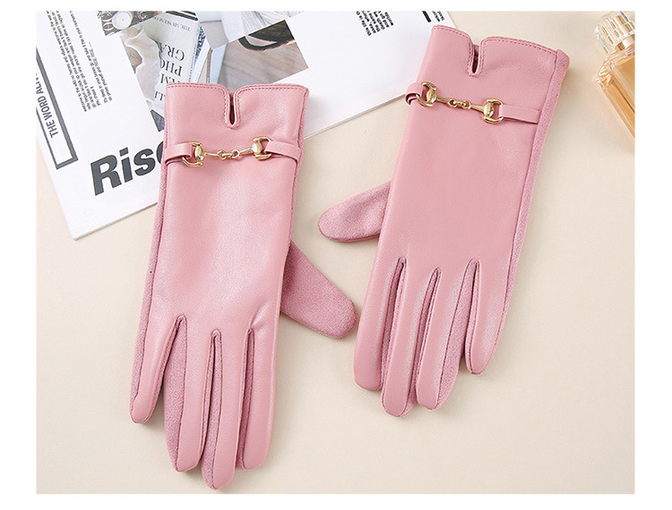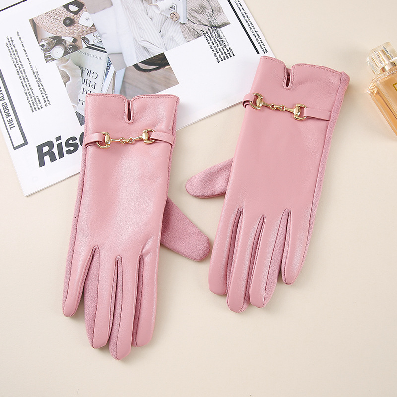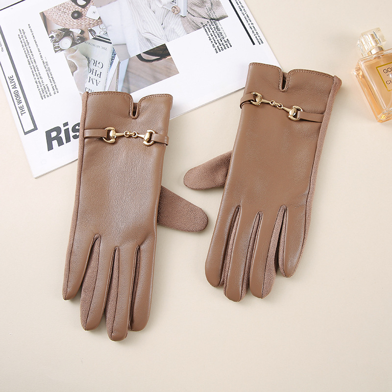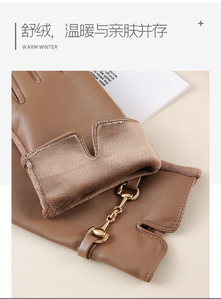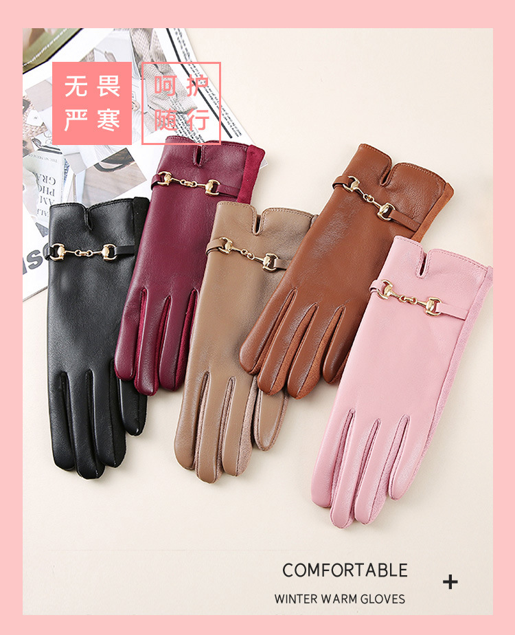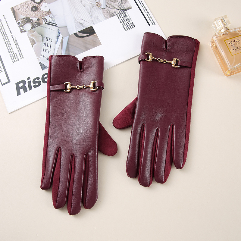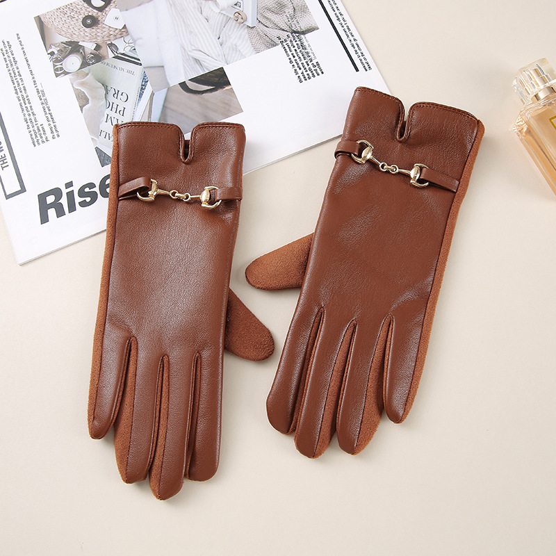 새로운 한국 스타일 가을과 겨울 PU 가죽 장갑 따뜻한 여성의 운전 라이드 터치 스크린 방풍 기모 체인 핑거 장갑