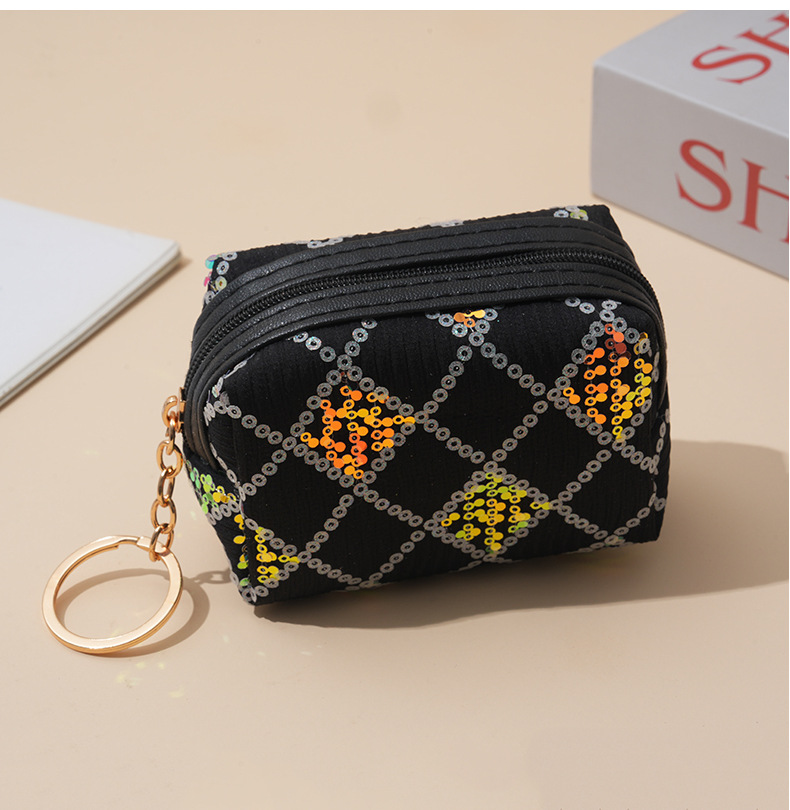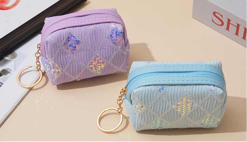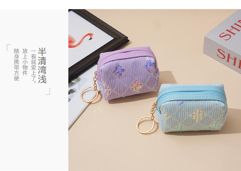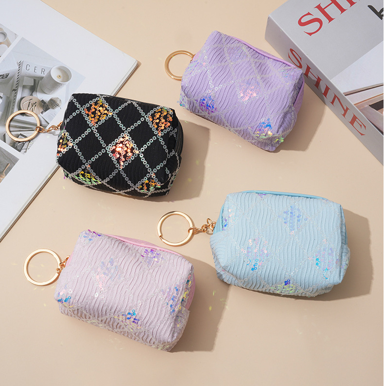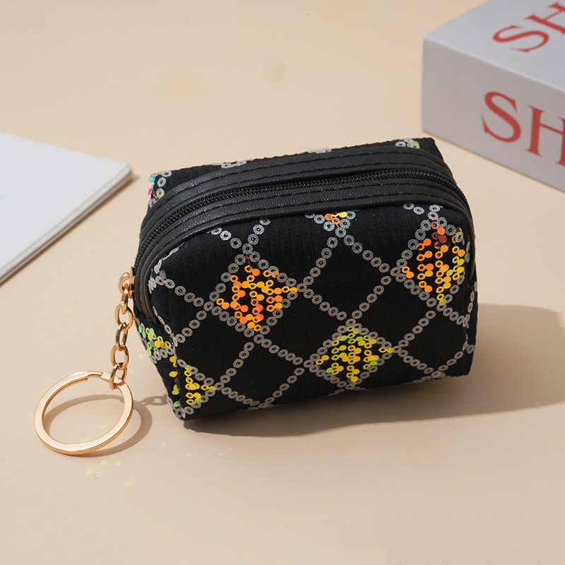 새로운 다이아몬드 패턴의 작은 향수병 모양 동전 지갑, 고급스러운 자수 스팽글 이어폰 가방, 휴대용 립스틱 수납 키체인 가방