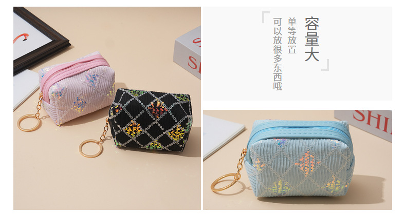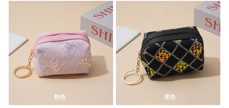 새로운 다이아몬드 패턴의 작은 향수병 모양 동전 지갑, 고급스러운 자수 스팽글 이어폰 가방, 휴대용 립스틱 수납 키체인 가방스토어 가기