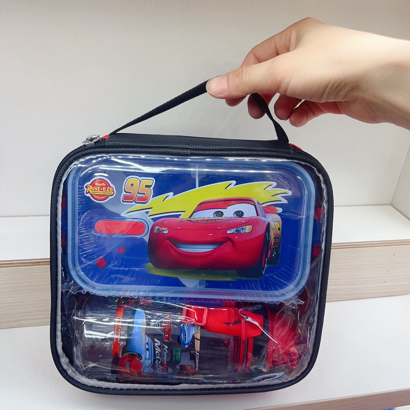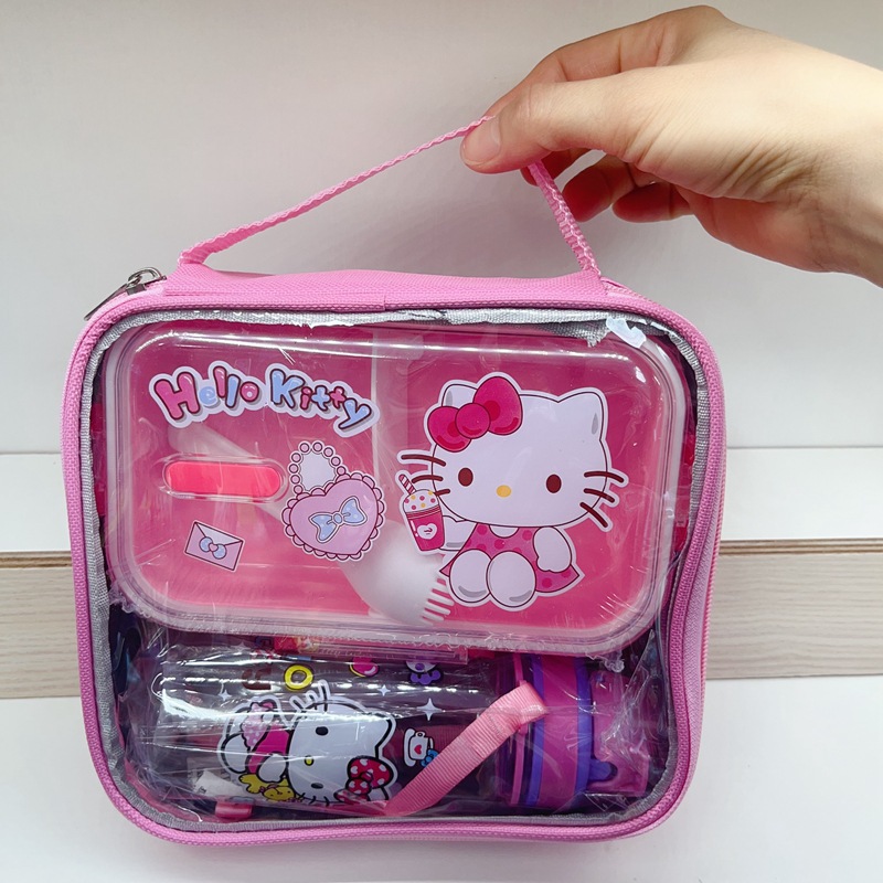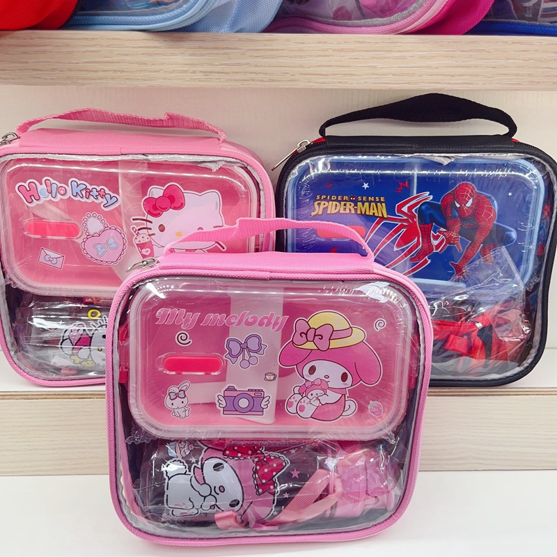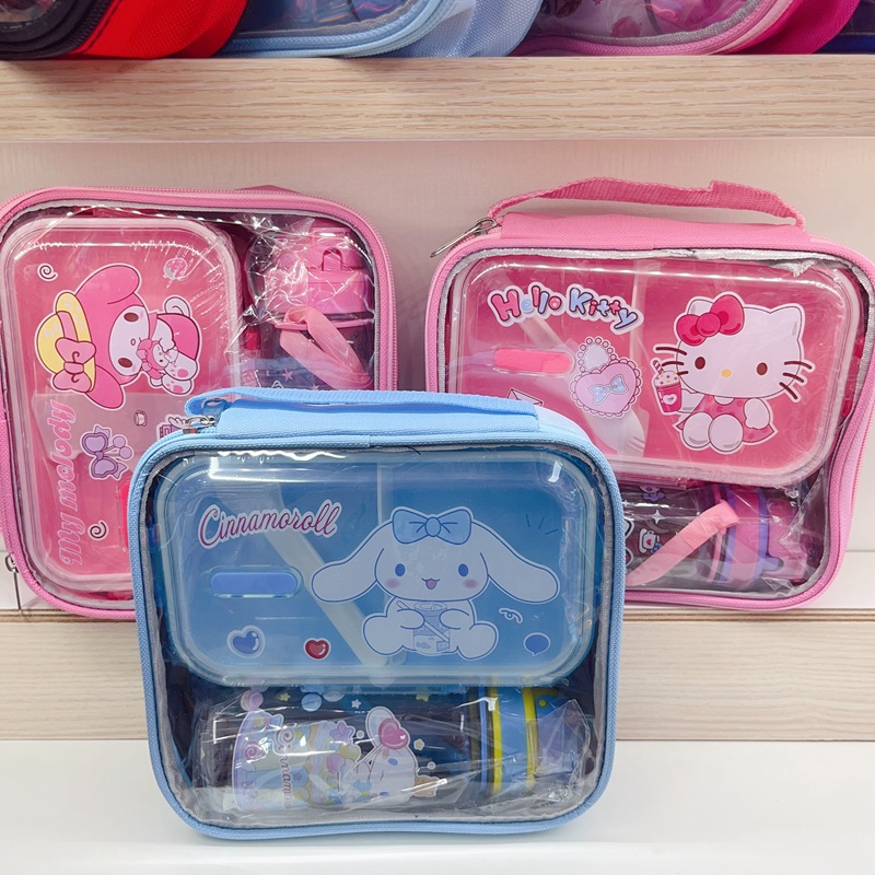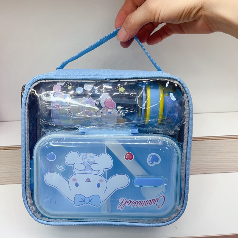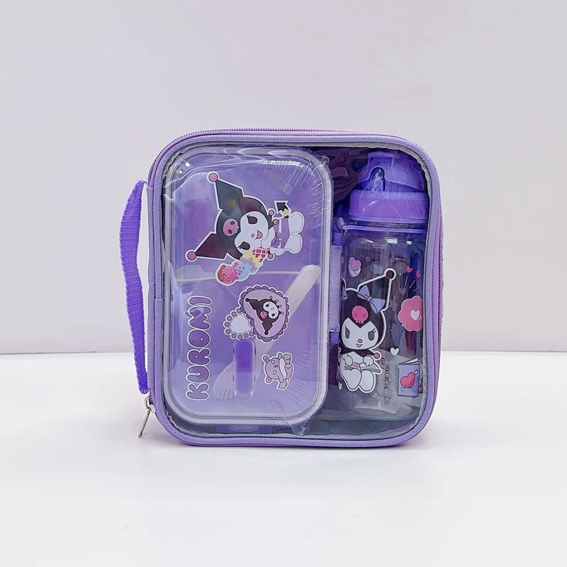 창조적 인 만화 모양의 어린이 플라스틱 도시락 세트 주전자 세트 어린이 밀짚 주전자 물 컵 3 칸 쌀스토어 가기