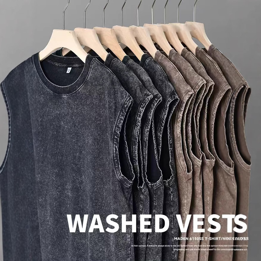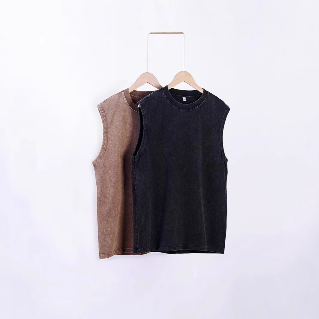 미국 헤비급 240g 면화 양복 조끼 남성 여름, 조수 브랜드 단색으로 씻은 오래된 민소매 티셔츠 언더 셔츠스토어 가기