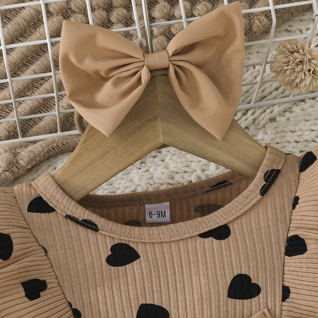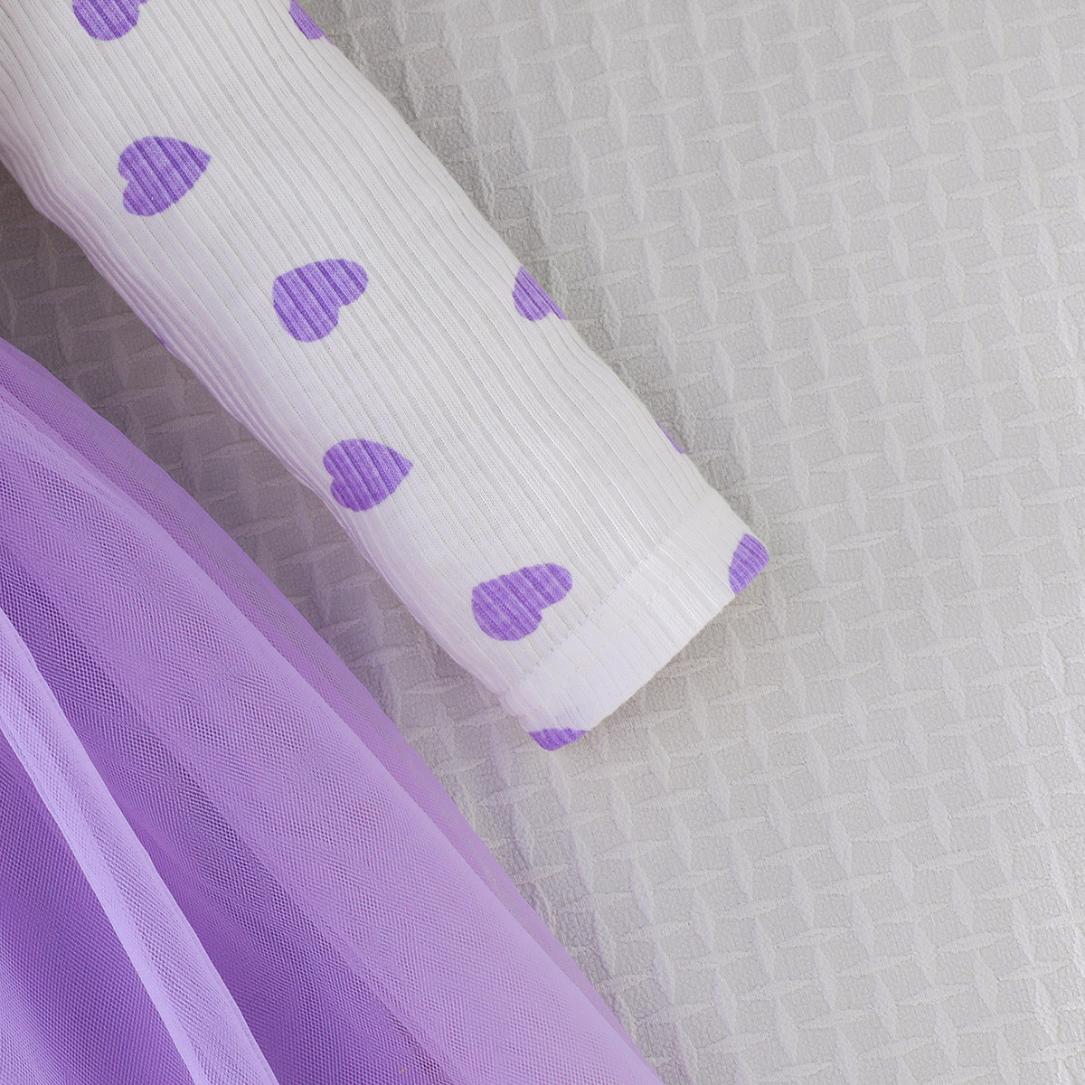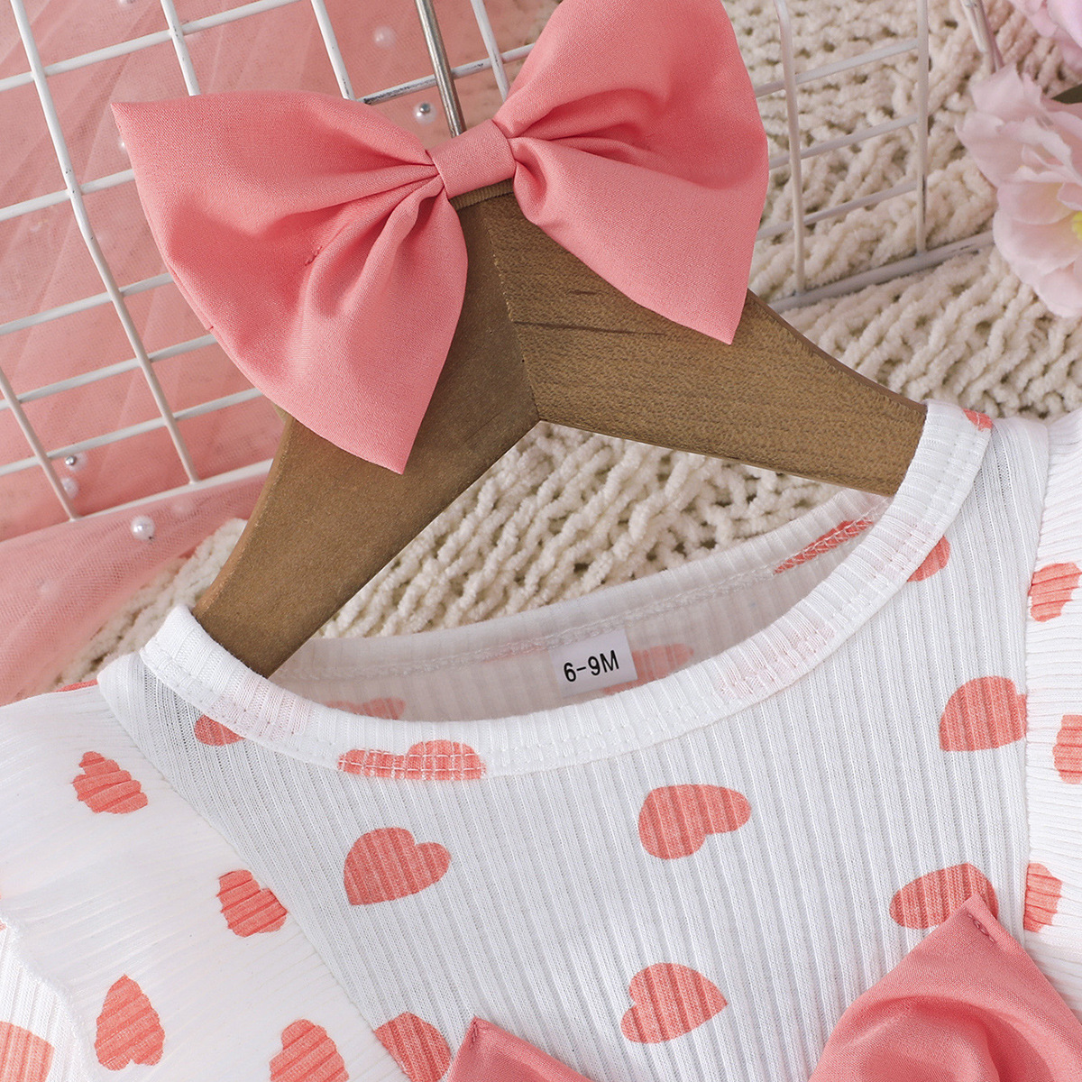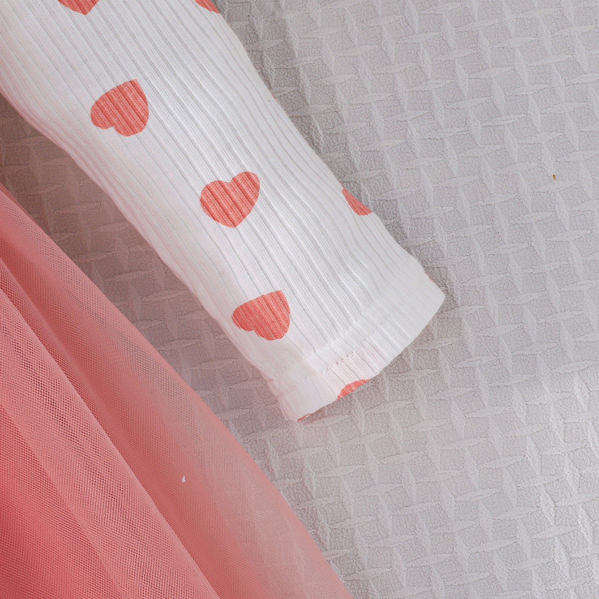 0-3세 여아용 봄, 가을 달콤하고 귀여운 공주 드레스, 면 골지 하트 프린트 망사 드레스 + 헤어밴드
