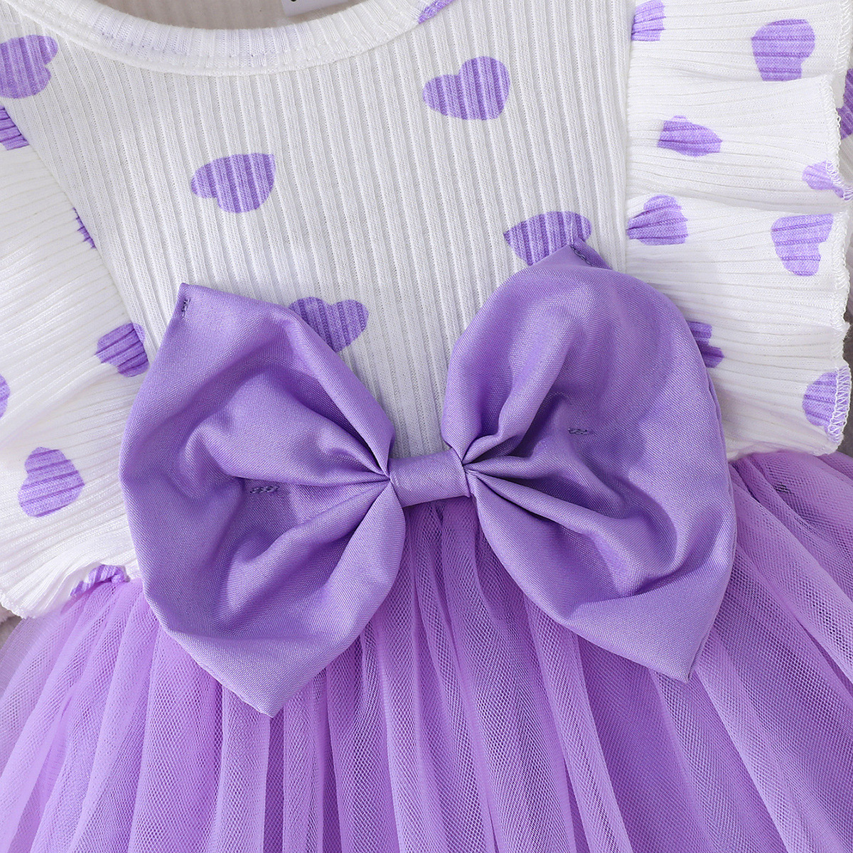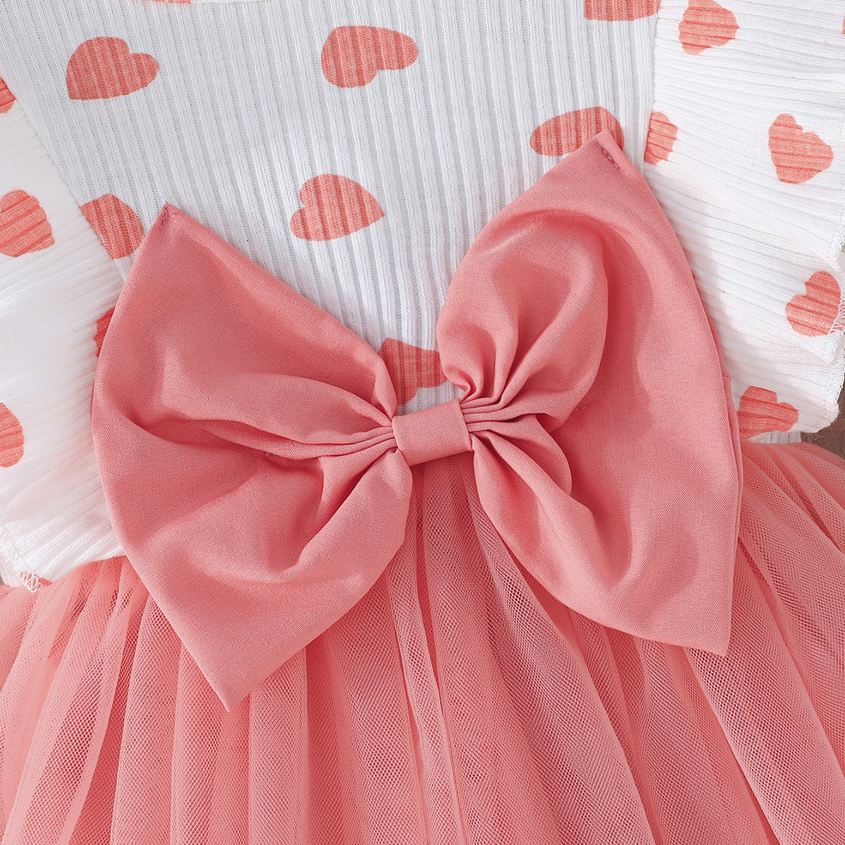 0-3세 여아용 봄, 가을 달콤하고 귀여운 공주 드레스, 면 골지 하트 프린트 망사 드레스 + 헤어밴드스토어 가기