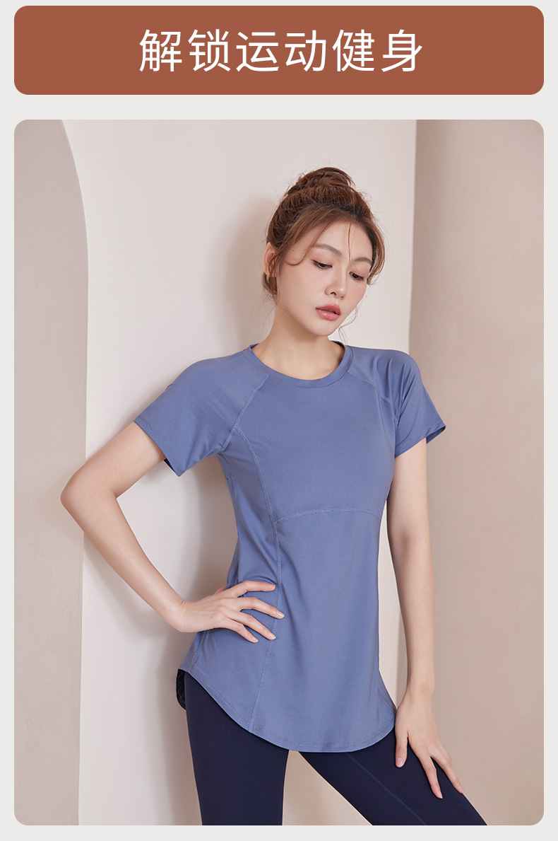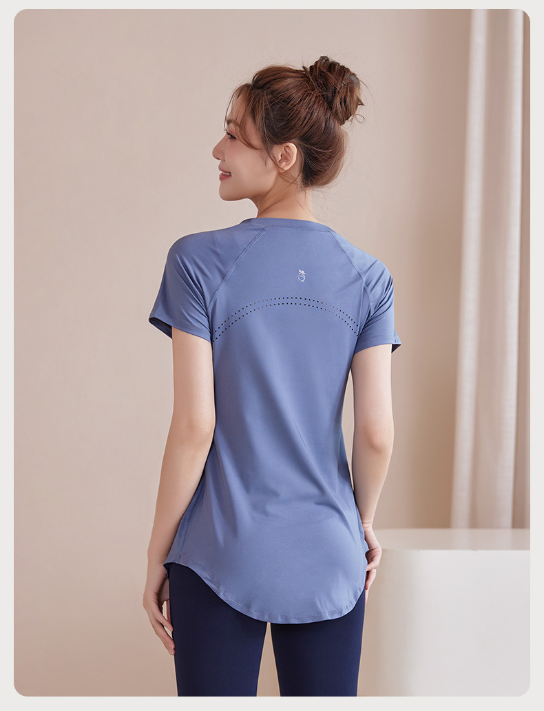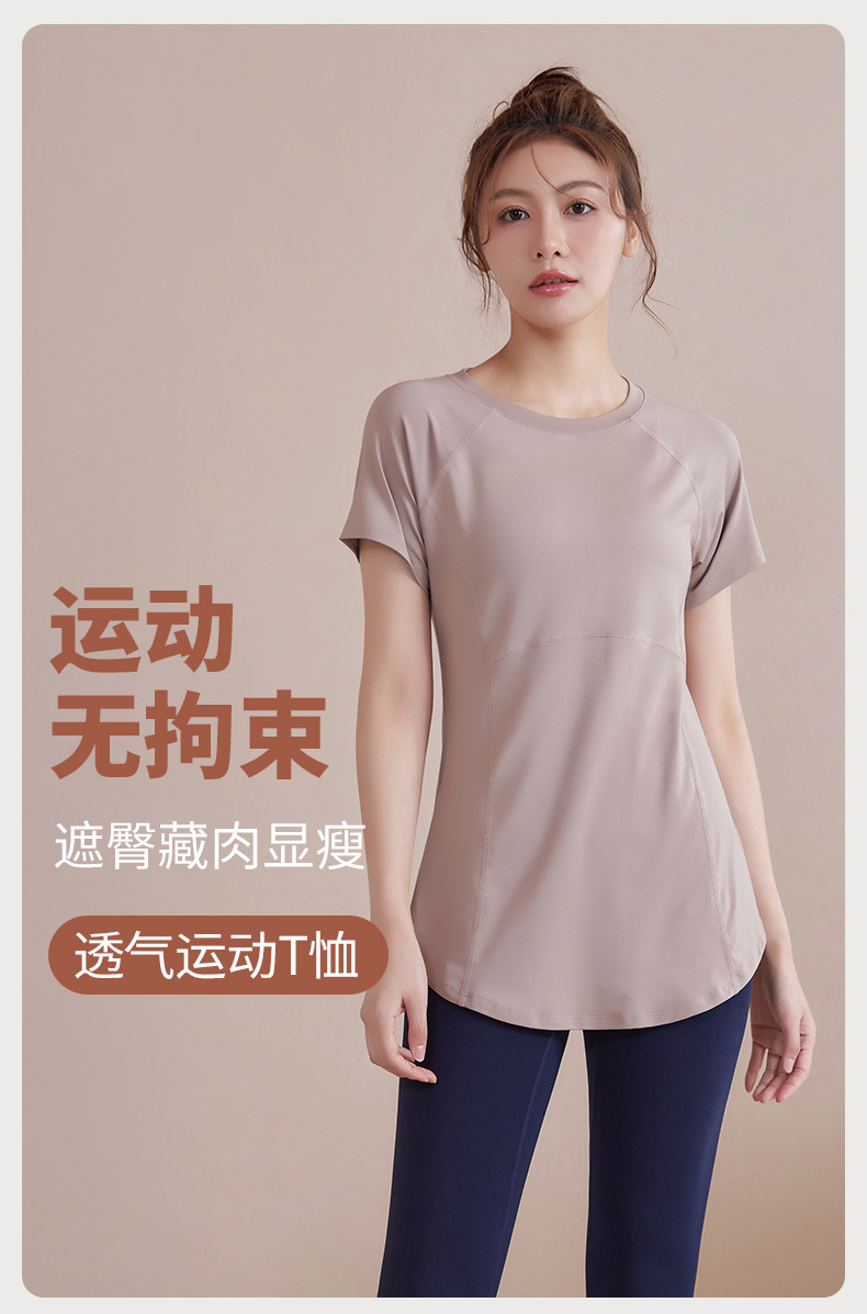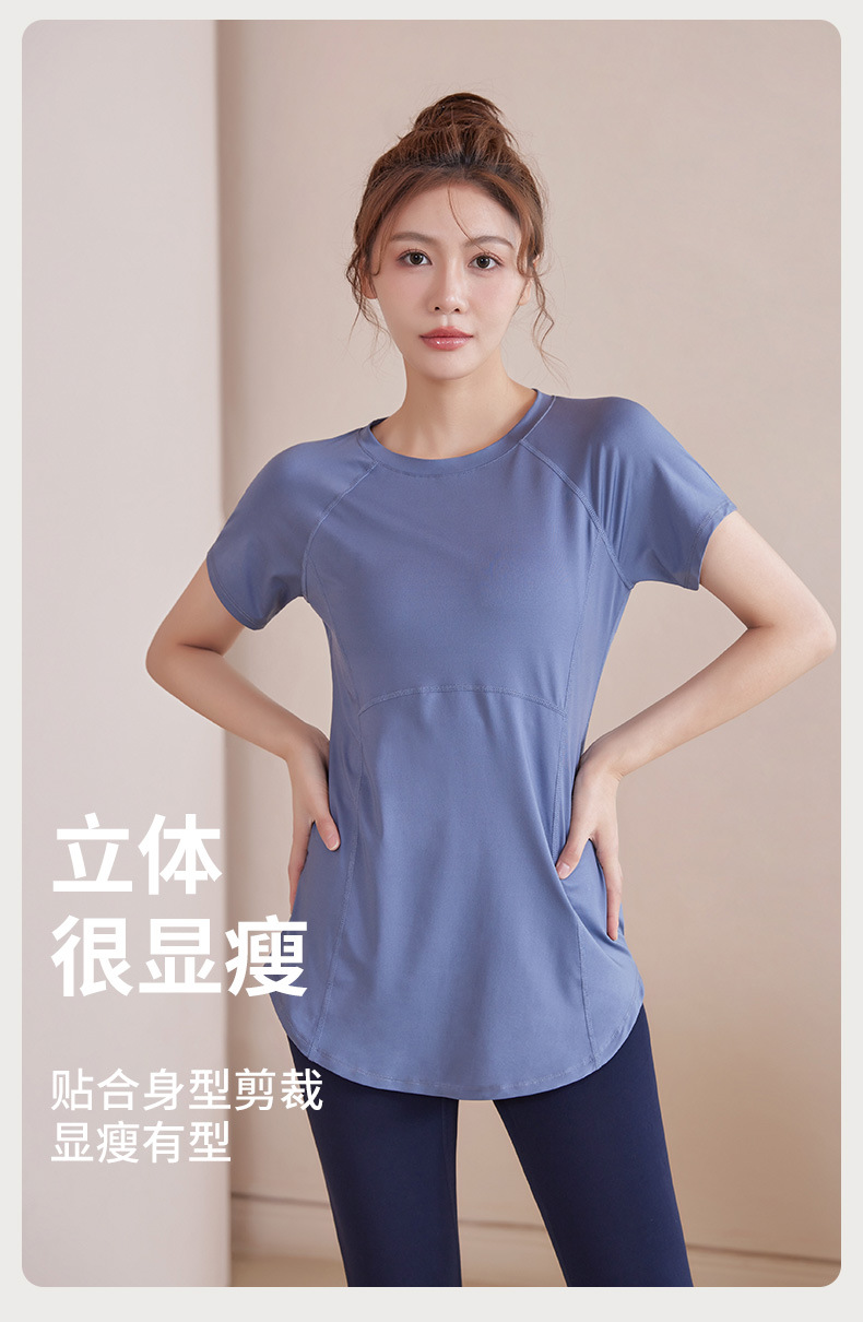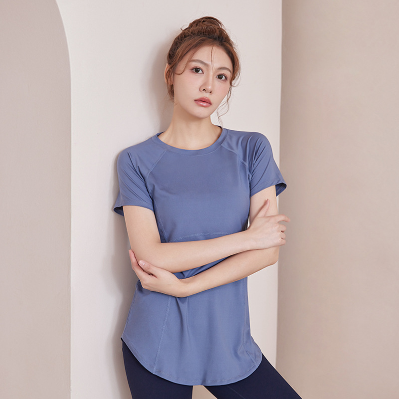 봄과 여름 새로운 요가 옷 여성의 긴 엉덩이 덮개 슬림 달리기 최고 수준의 스포츠 빠른 드라이 블라우스 피트니스 옷스토어 가기