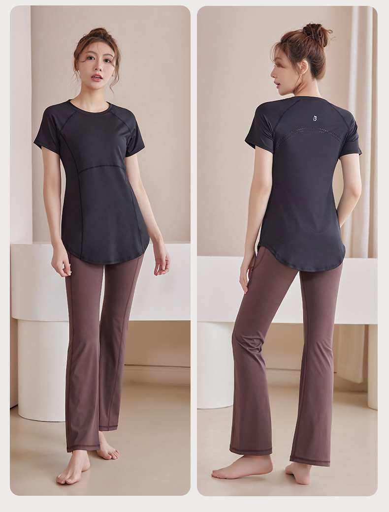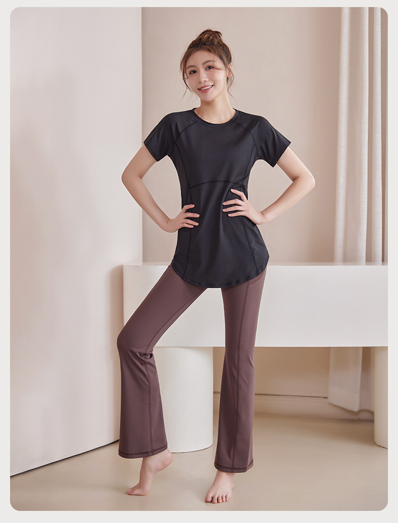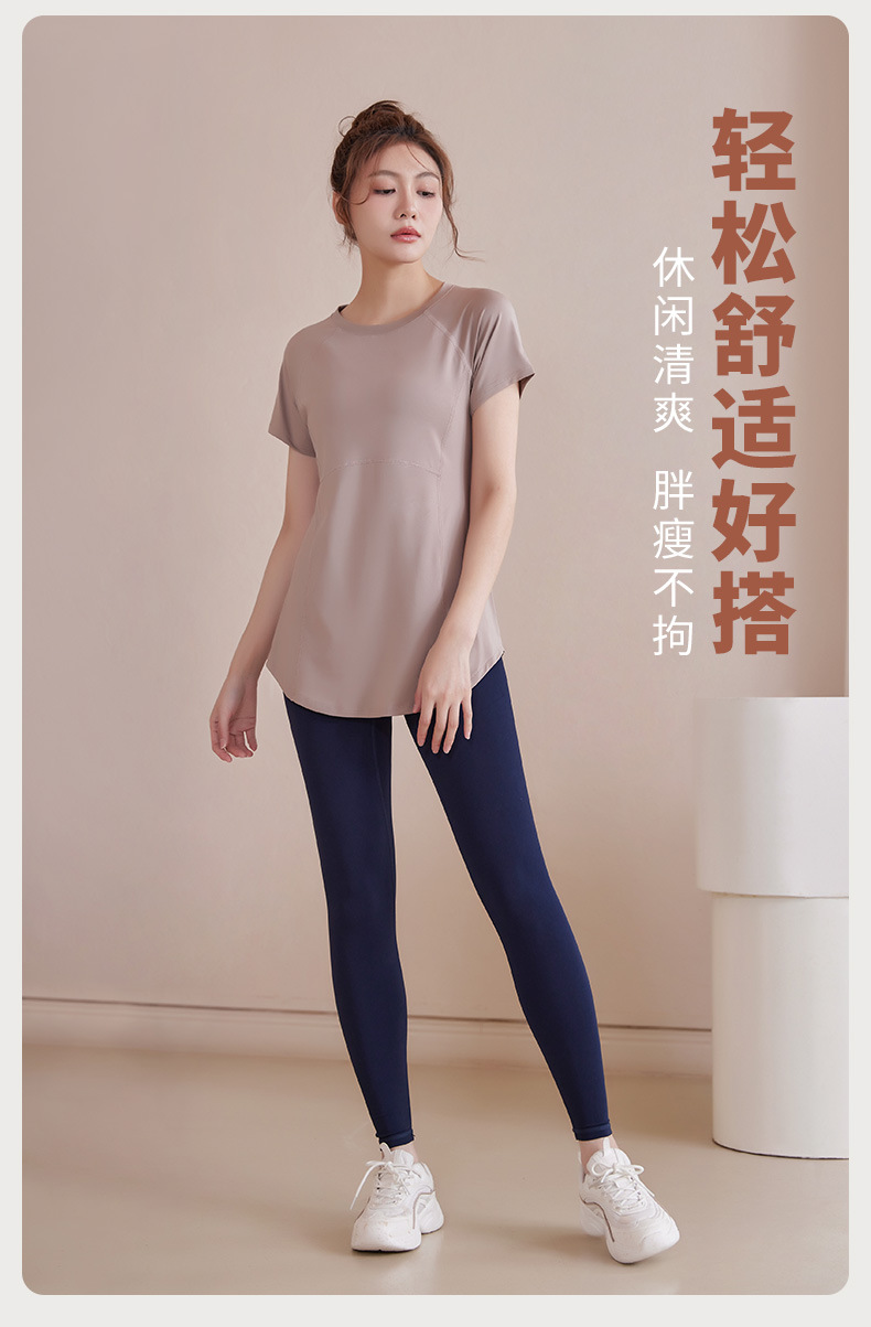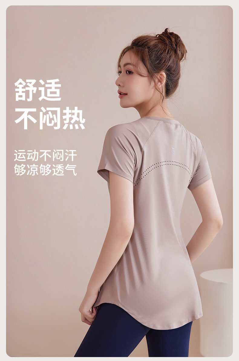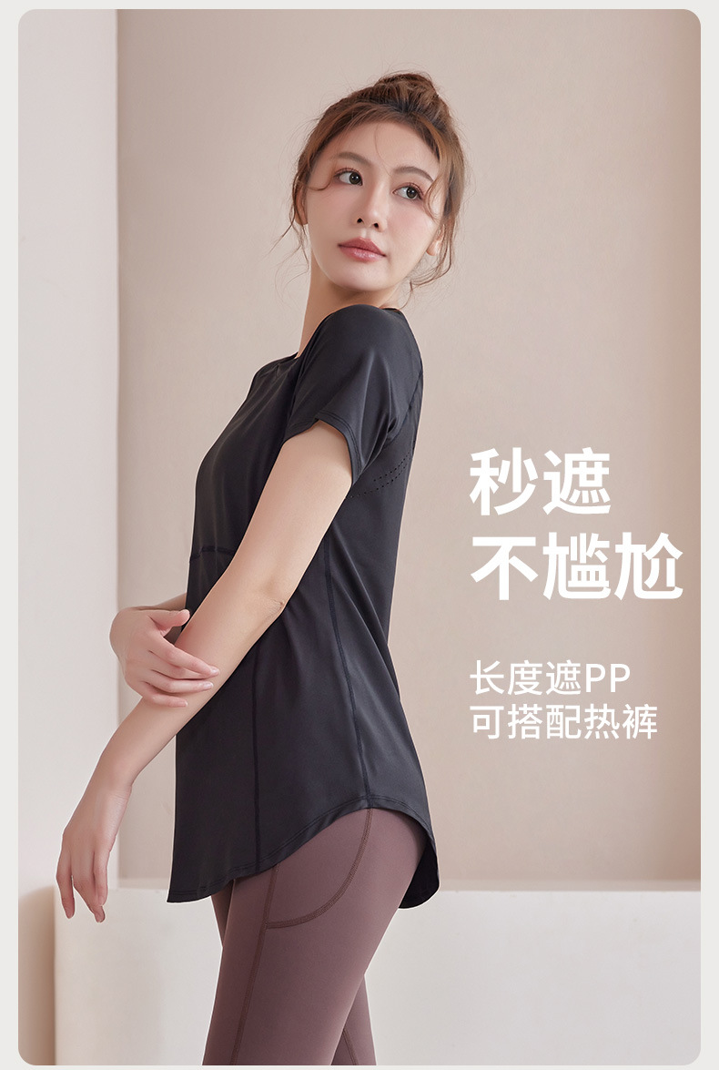 봄과 여름 새로운 요가 옷 여성의 긴 엉덩이 덮개 슬림 달리기 최고 수준의 스포츠 빠른 드라이 블라우스 피트니스 옷스토어 가기