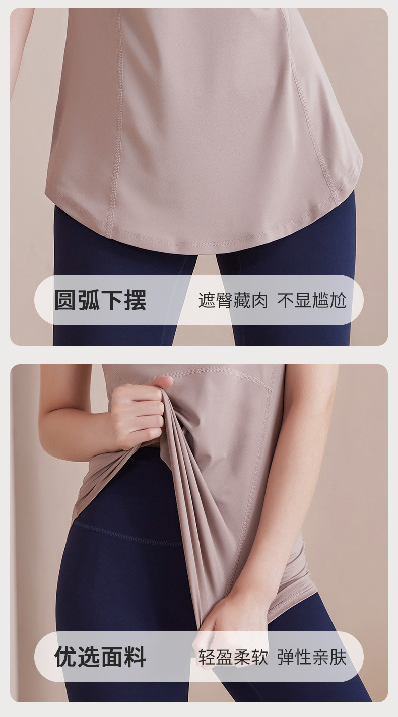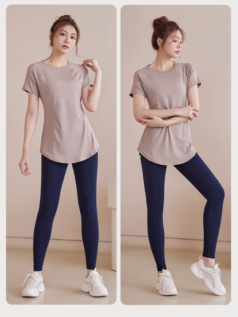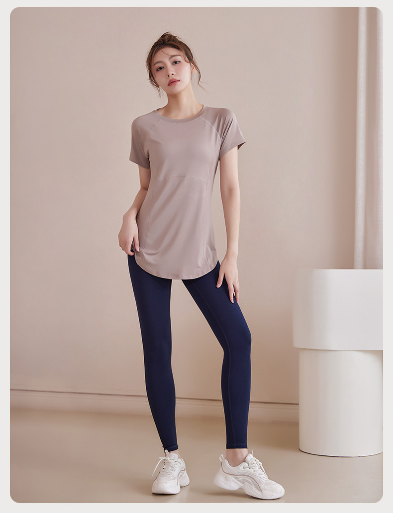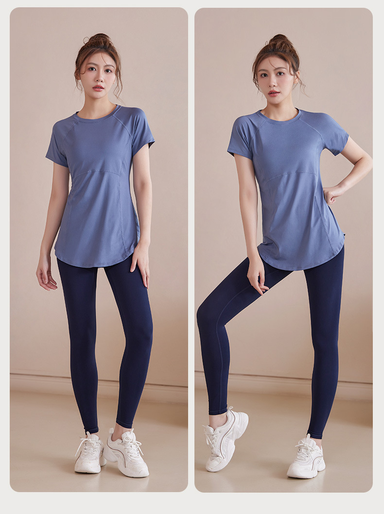 봄과 여름 새로운 요가 옷 여성의 긴 엉덩이 덮개 슬림 달리기 최고 수준의 스포츠 빠른 드라이 블라우스 피트니스 옷