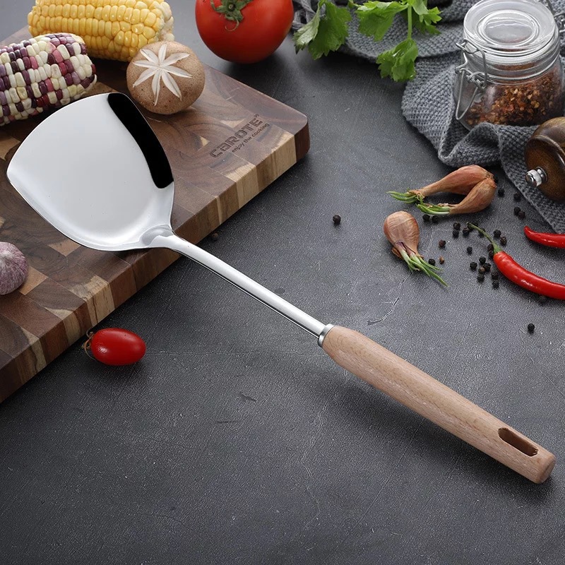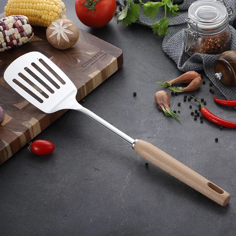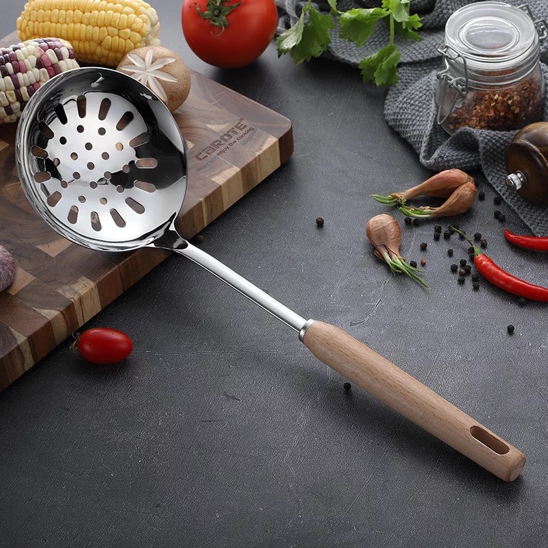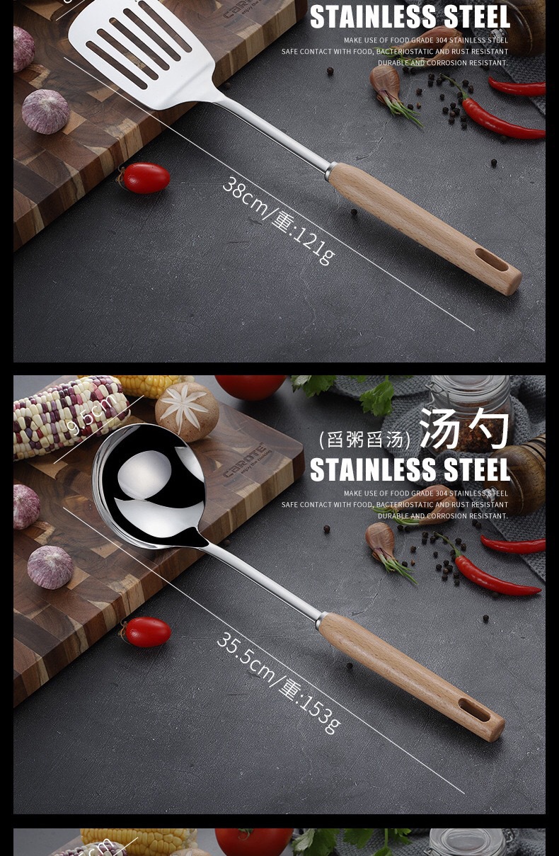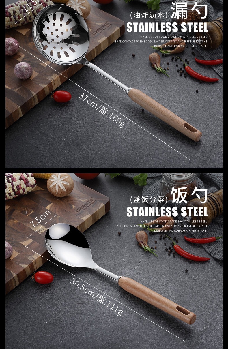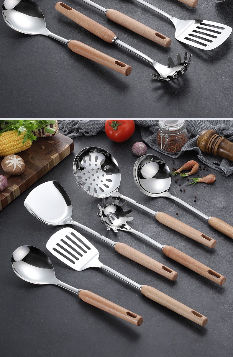 스테인레스 스틸 주방용품 6 피스 삽 스푼 소쿠더 안티 스케일 나무 손잡이 스푼 요리 도구 가정용 주방용품 세트