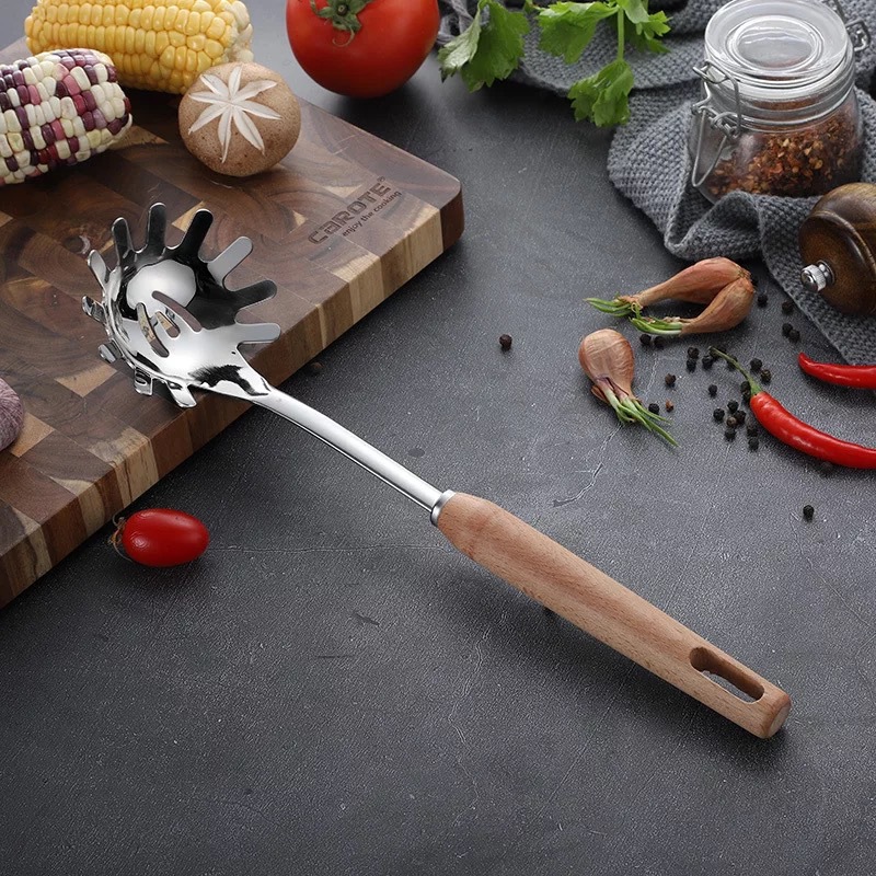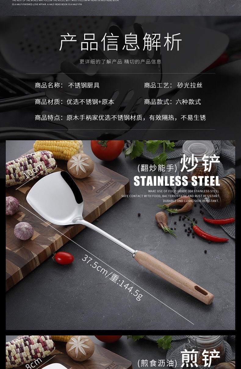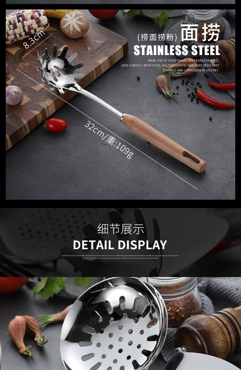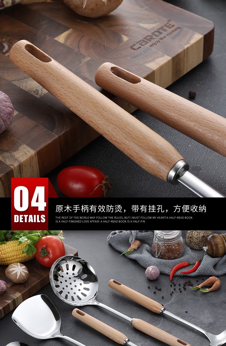 스테인레스 스틸 주방용품 6 피스 삽 스푼 소쿠더 안티 스케일 나무 손잡이 스푼 요리 도구 가정용 주방용품 세트스토어 가기