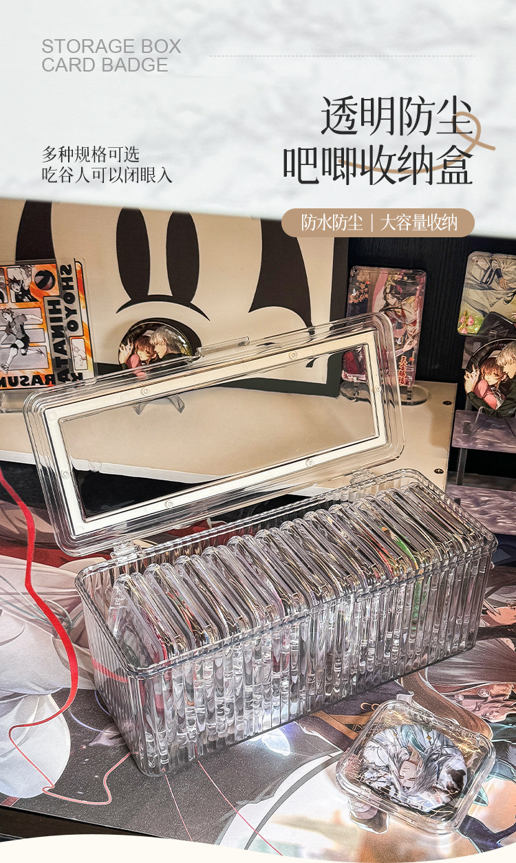 Yum 저장 상자 투명 아크릴 배지 기장 디스플레이 스탠드 단일 상자 먼지 방지 작은 카드 마무리 저장 랙