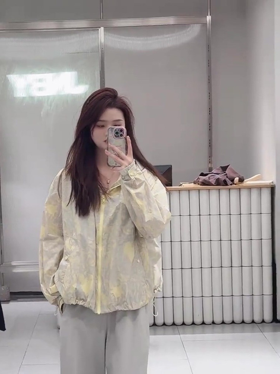 봄과 여름 2024 유행 캐주얼 루즈 프린트 후드 재킷 안티-선 스크린 긴 소매 재킷 여성용 자켓스토어 가기