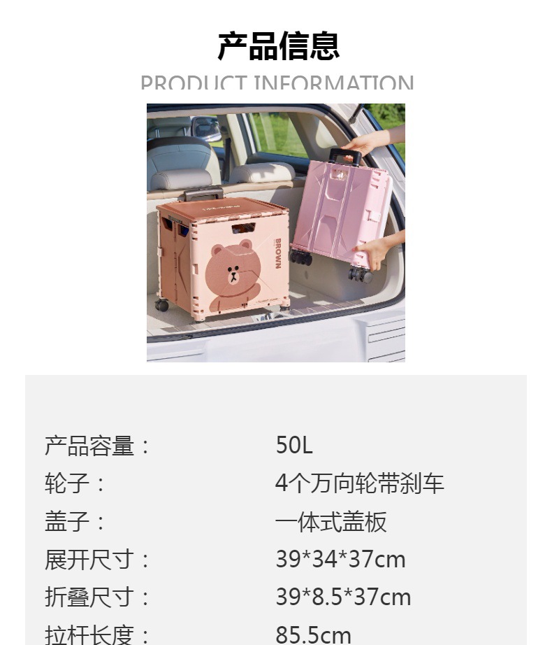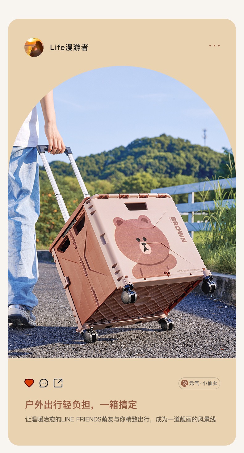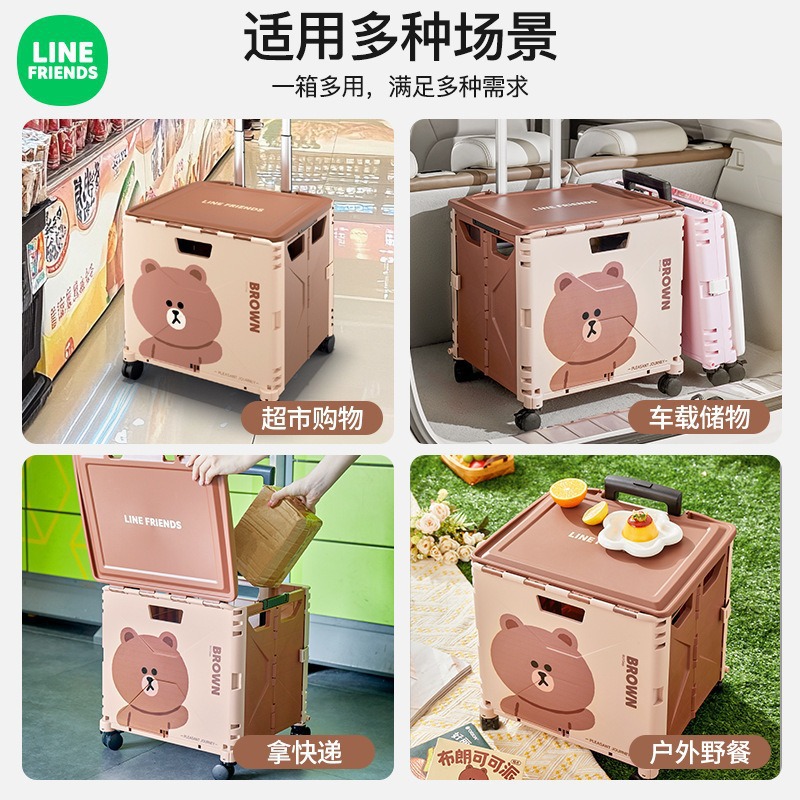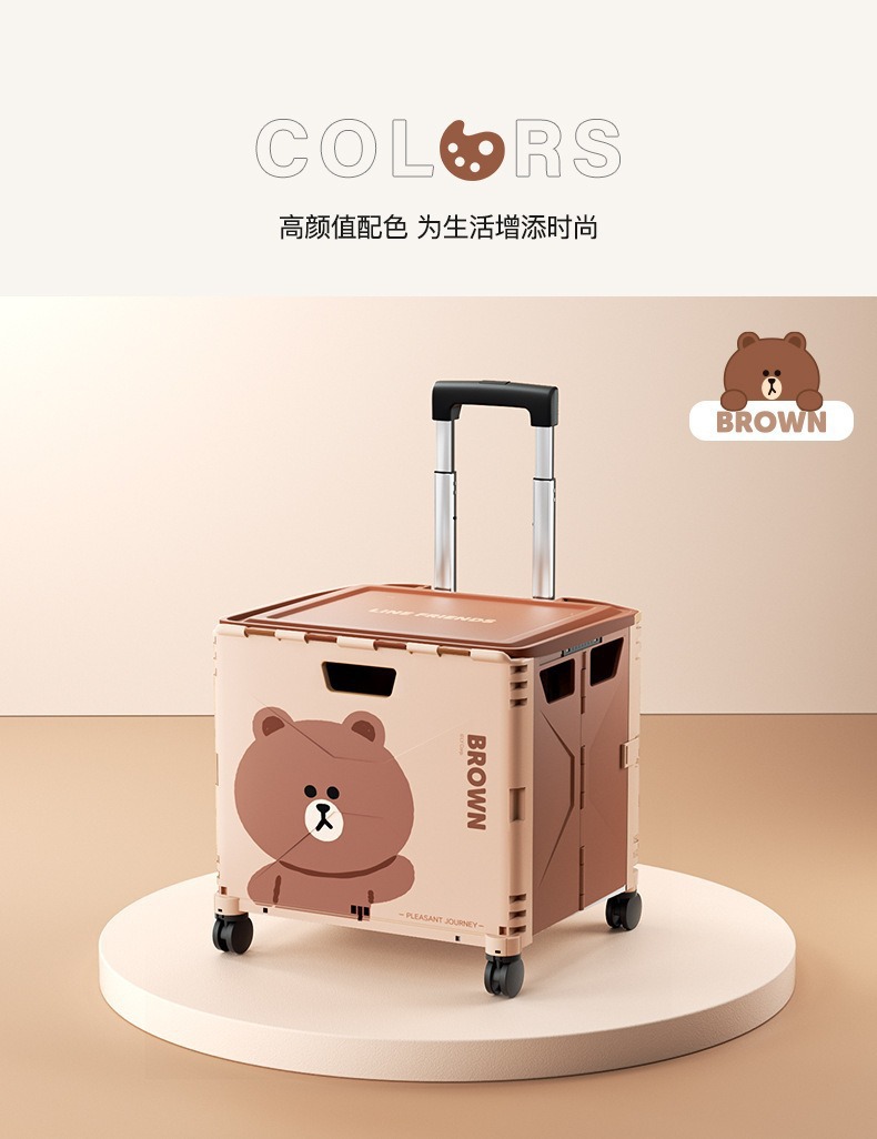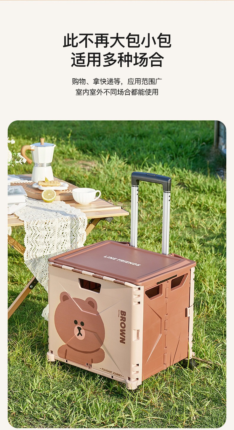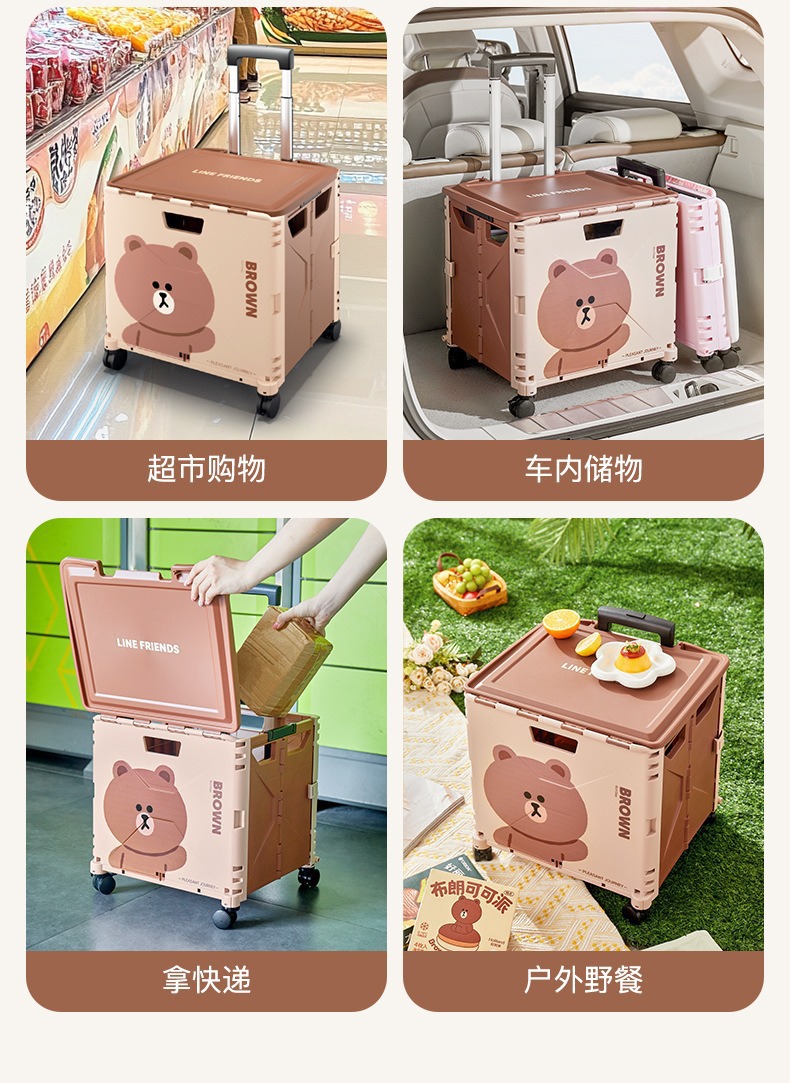 맞춤형 일본 및 한국 4륜 트롤리 휴대용 접이식 슈퍼마켓 쇼핑 카트 트롤리 전신 인쇄 50L 캠핑카스토어 가기