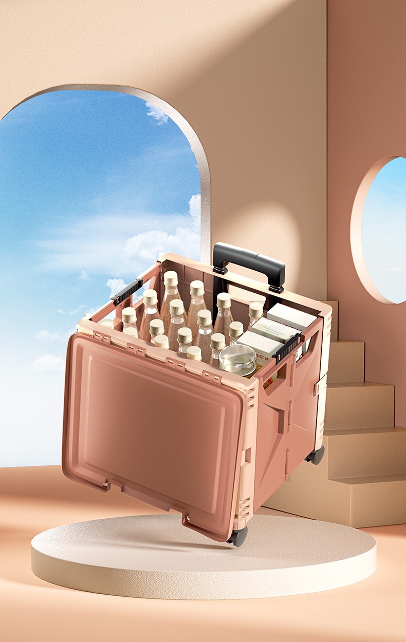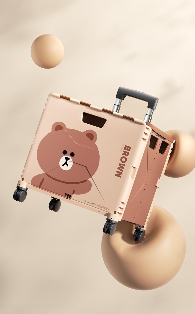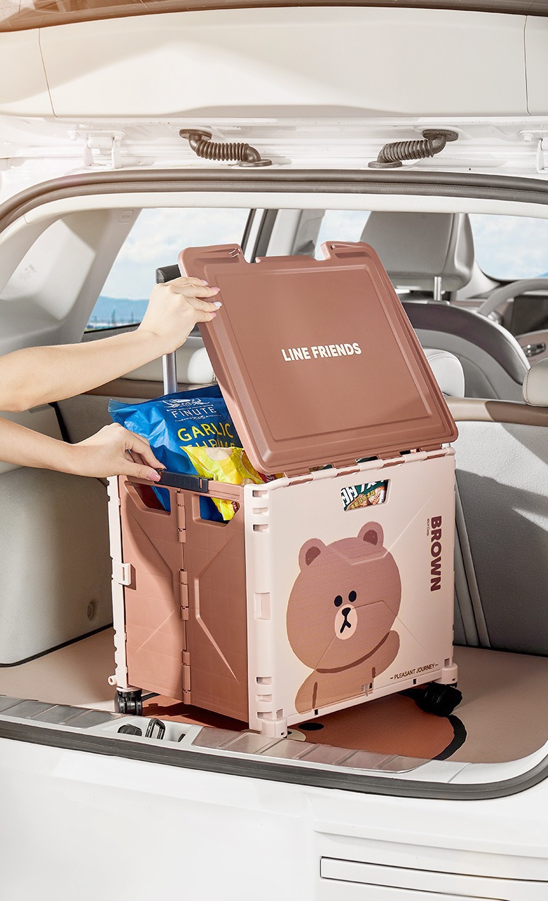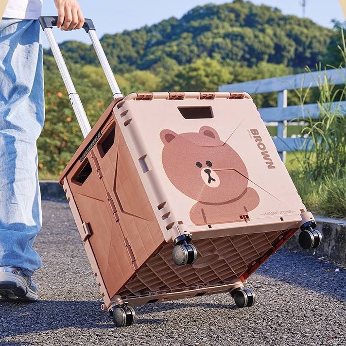 맞춤형 일본 및 한국 4륜 트롤리 휴대용 접이식 슈퍼마켓 쇼핑 카트 트롤리 전신 인쇄 50L 캠핑카