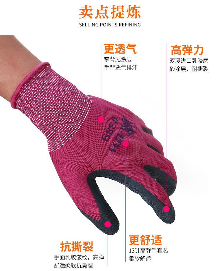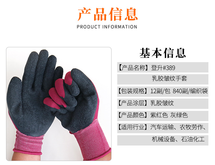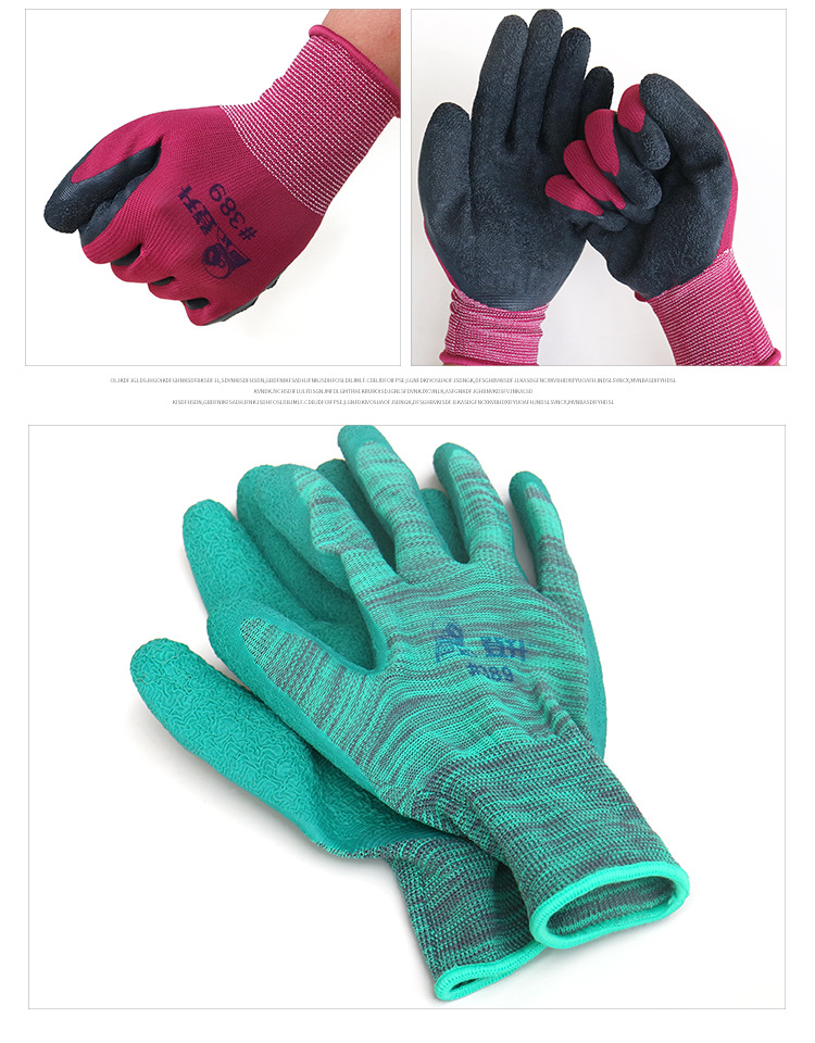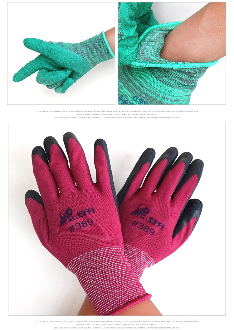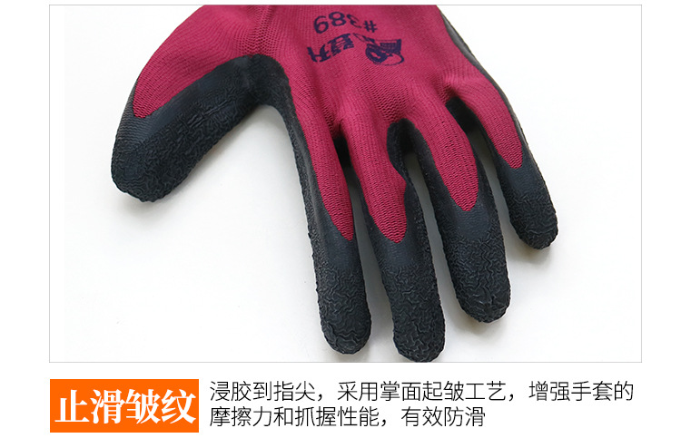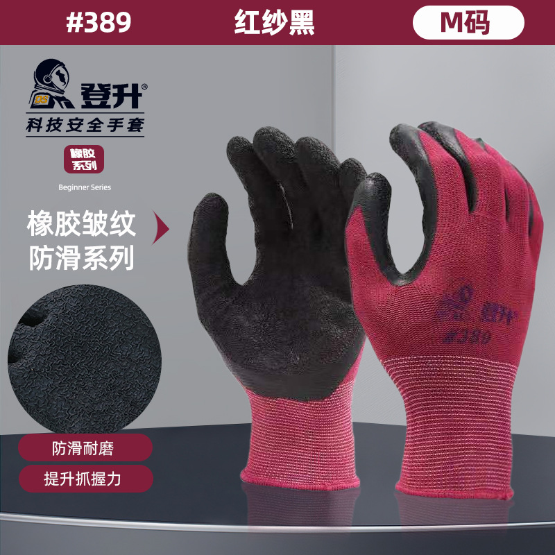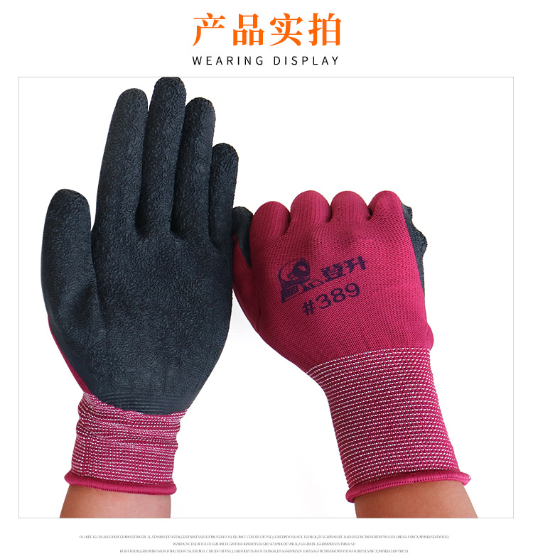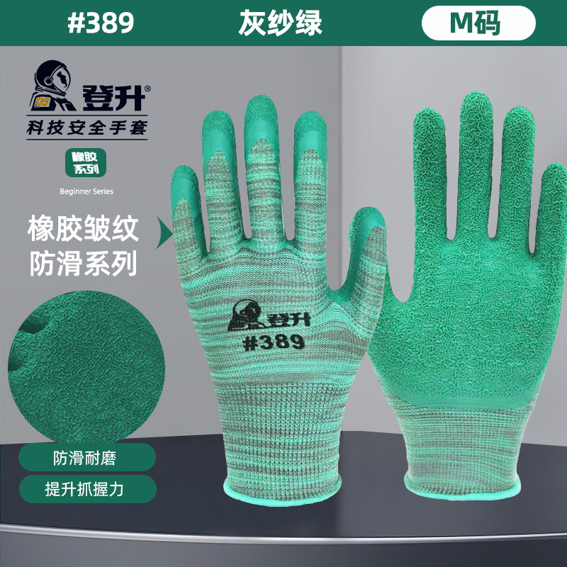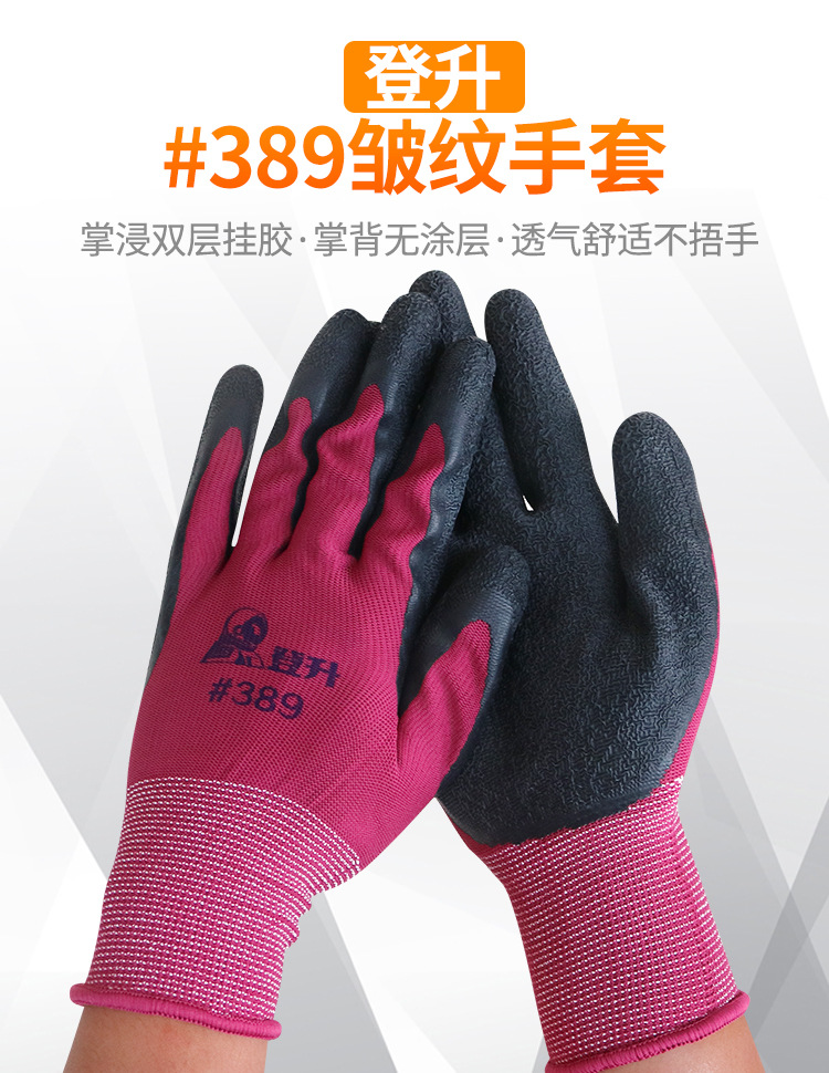 Dengsheng #389 나일론 라텍스 주름 장갑 13 핀 미끄럼 방지 내마모성 처리 작업 노동 보호 장갑스토어 가기