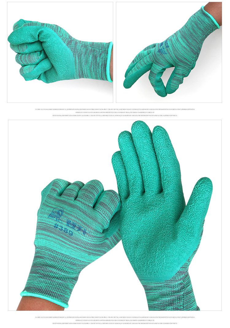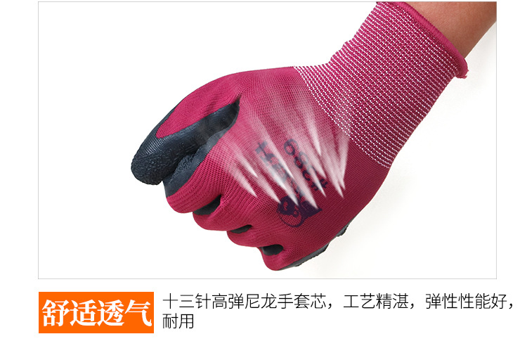 Dengsheng #389 나일론 라텍스 주름 장갑 13 핀 미끄럼 방지 내마모성 처리 작업 노동 보호 장갑