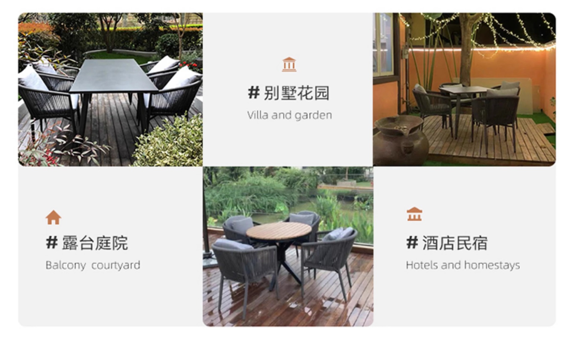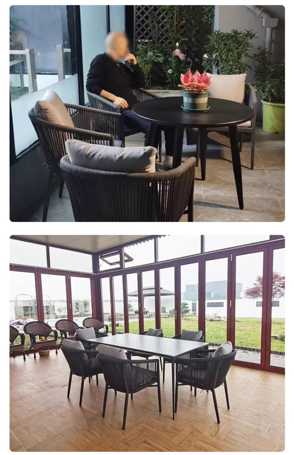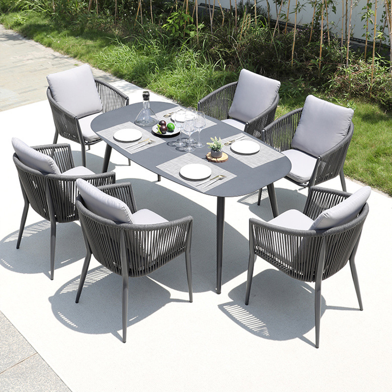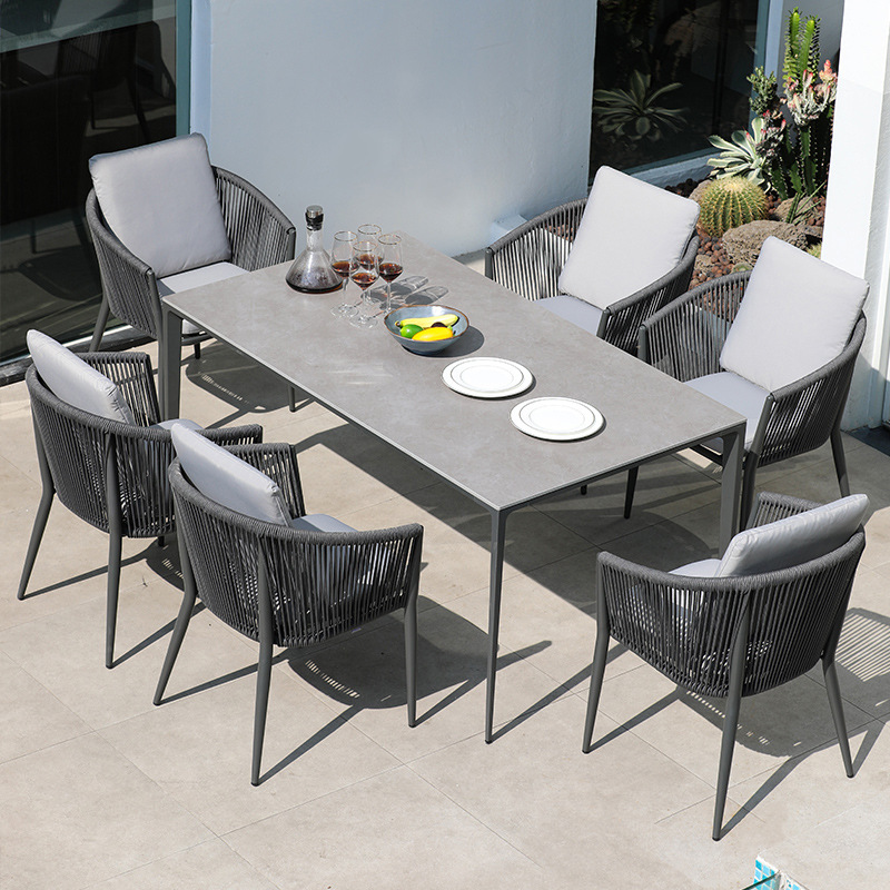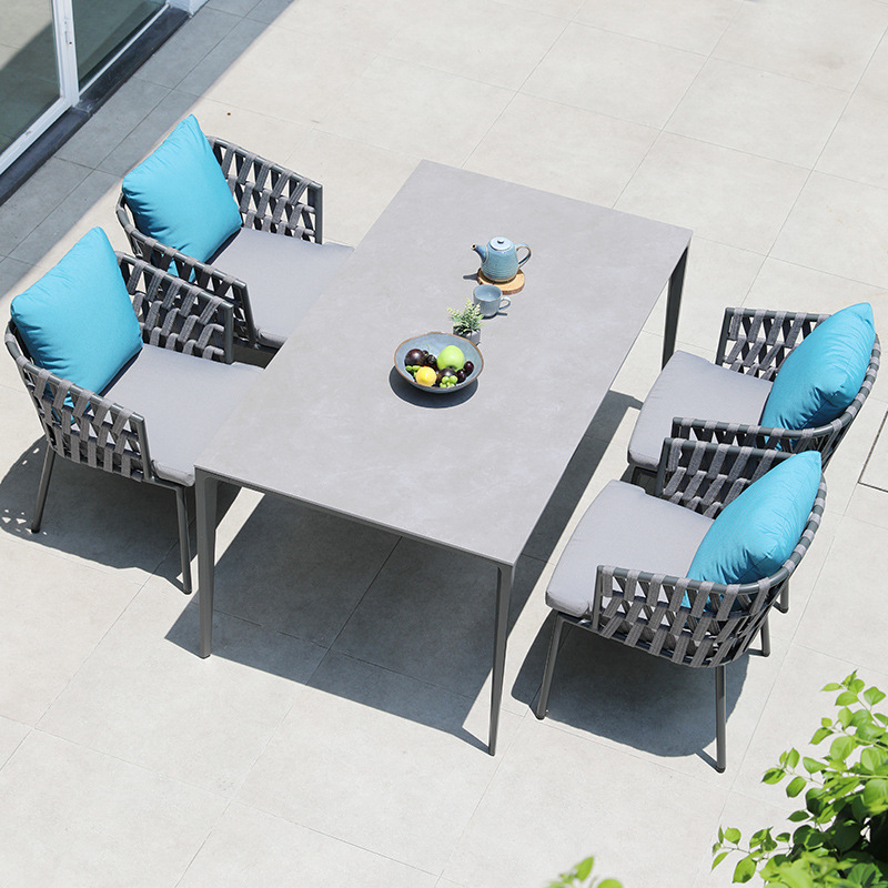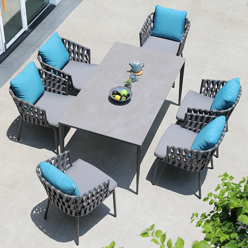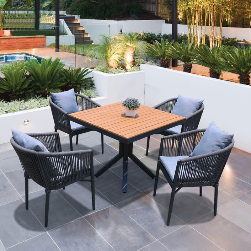 락 보드 야외 테이블 및 의자 코트야드 빌라 방수 태양 저항 레저 등나무 의자 테라스 호텔 야외 발코니 식탁 조합