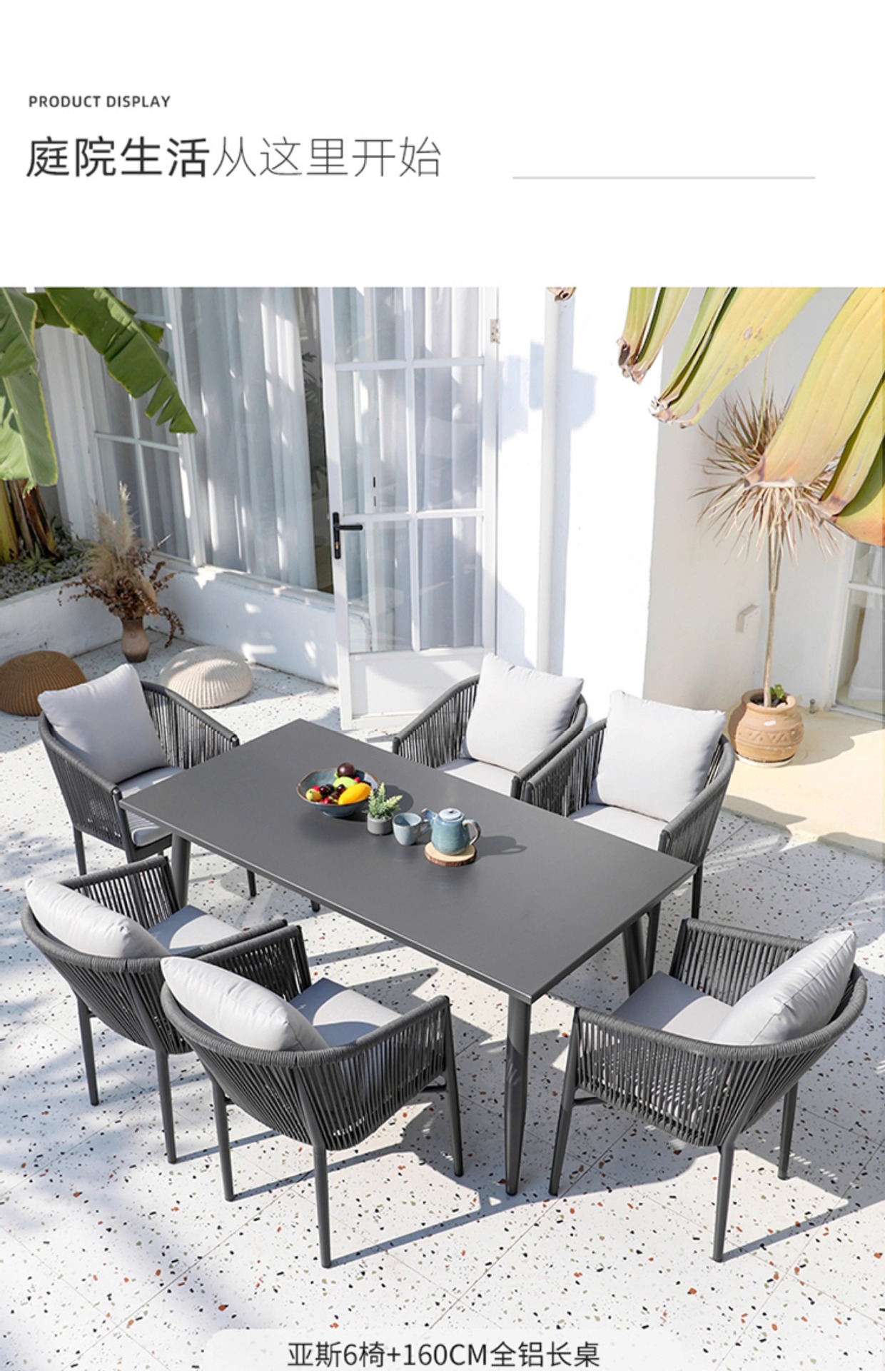 • 아스 의자 4개 + 160*80cm 전체 알루미늄 롱 테이블