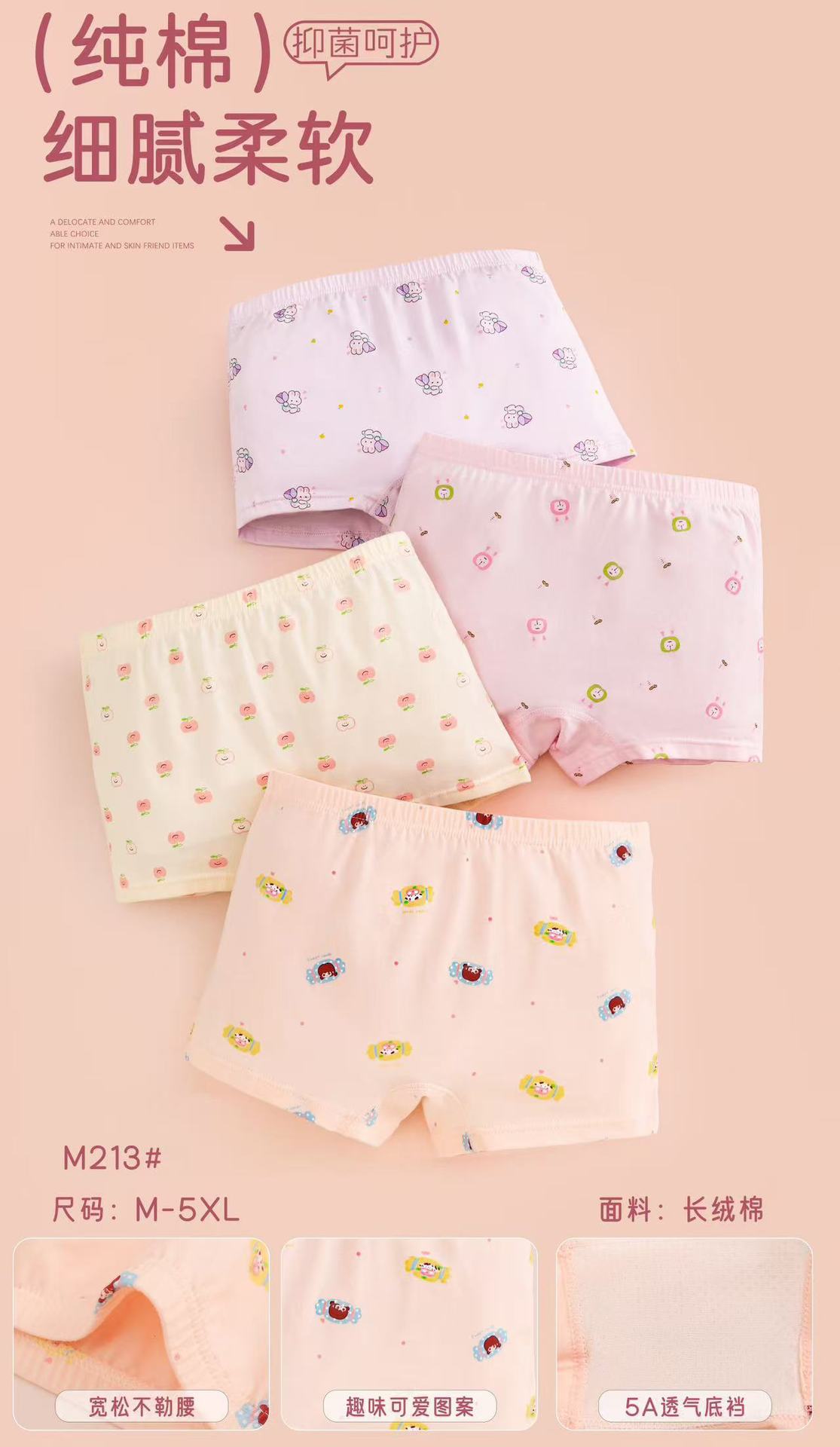 새 여아 속옷 어린이 빗 코튼 박스 뼈없는 만화 판지 통기성 복서 작고 큰 소녀