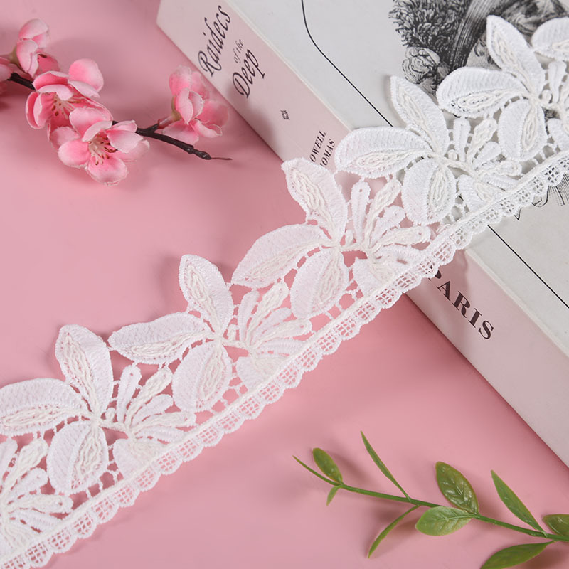 재고 7cm 일방적 인 흰색 잎 꽃 자수 레이스 우유 실크 뼈 로프 레이스 작은 향수 레이스 도매