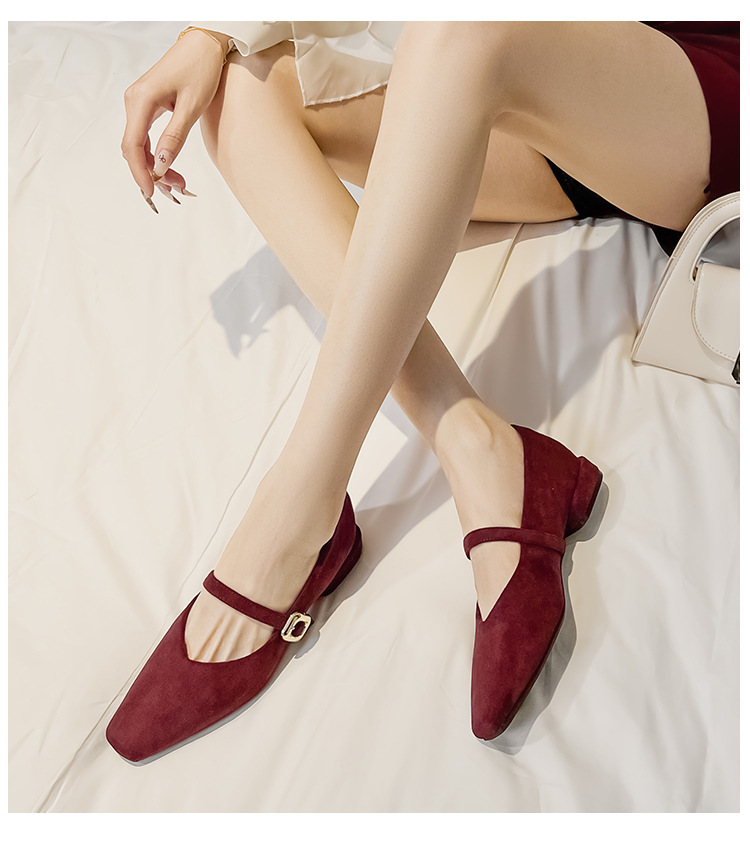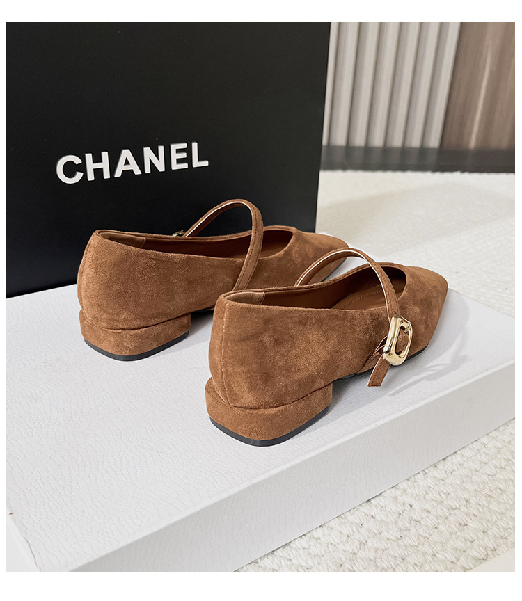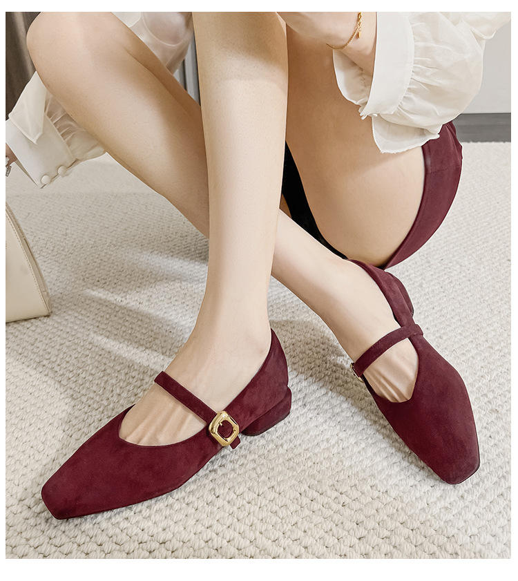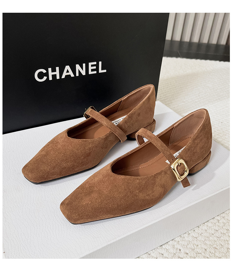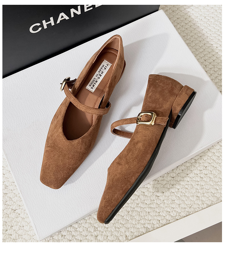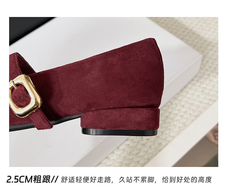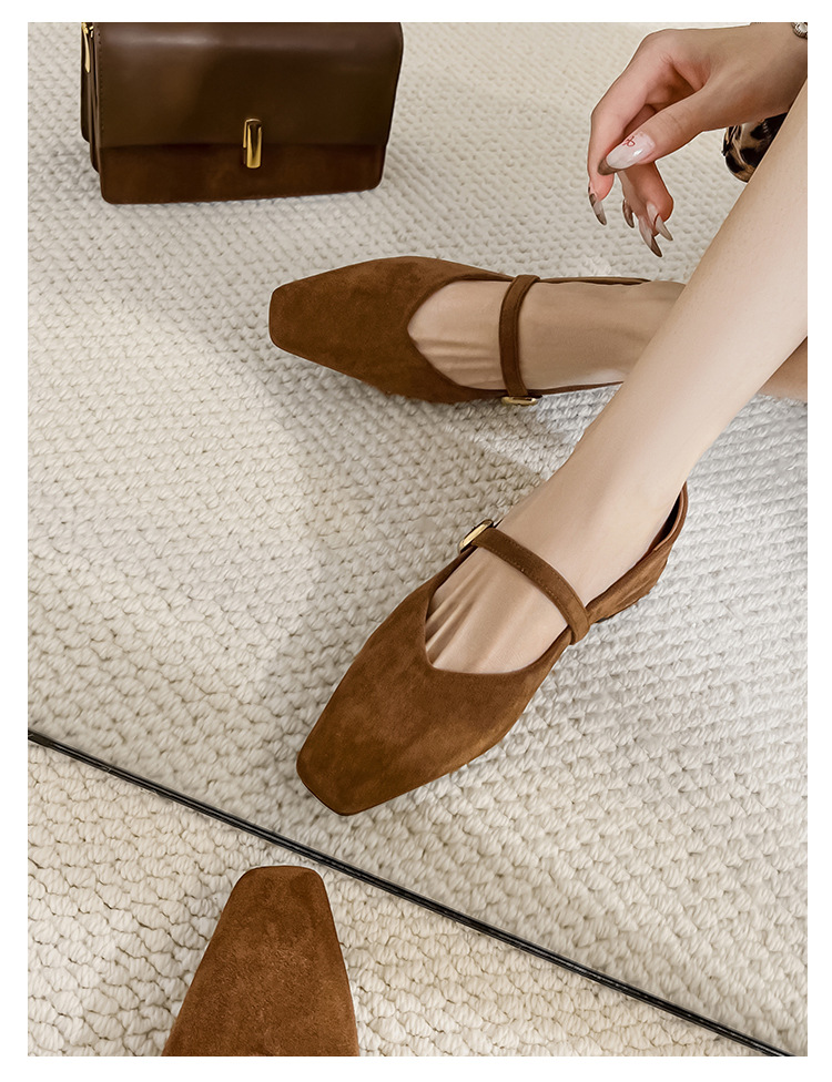 2025 새로운 올 매치 통근자 소프트 하단 피곤하지 않은 발 4 시즌 여성 신발 얕은 입 슈퍼 소프트 스퀘어 스웨이드 두꺼운 힐 싱글 레이어 신발스토어 가기