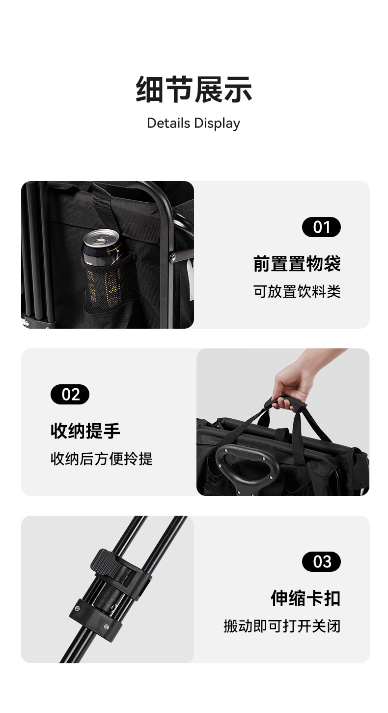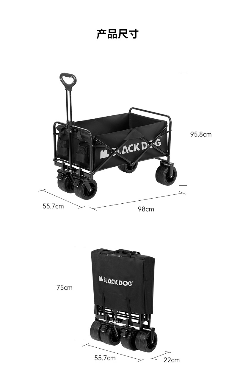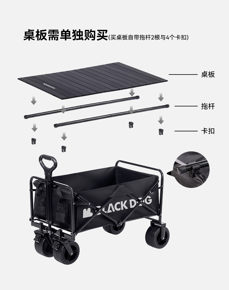 블랙 독 블랙 개 캠핑 자동차 트롤리 야외 캠핑 핸드 트롤리 스톨 테이블 보드 접이식 로밍 캠프 카