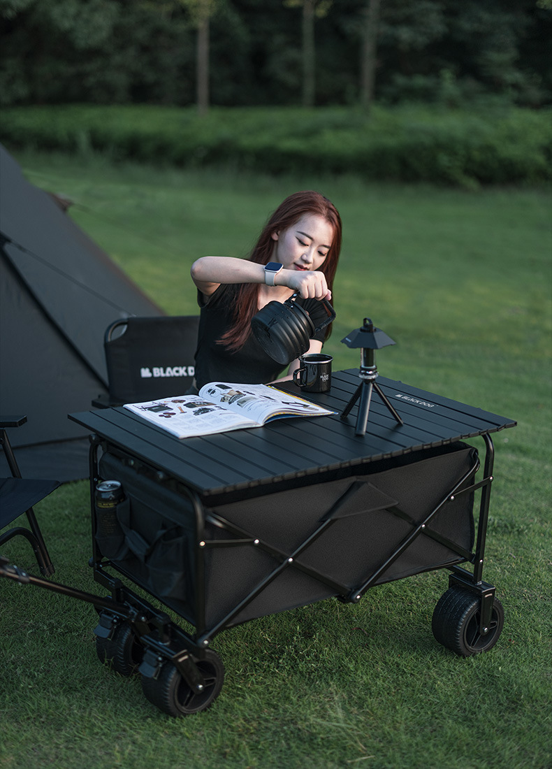 블랙 독 블랙 개 캠핑 자동차 트롤리 야외 캠핑 핸드 트롤리 스톨 테이블 보드 접이식 로밍 캠프 카스토어 가기