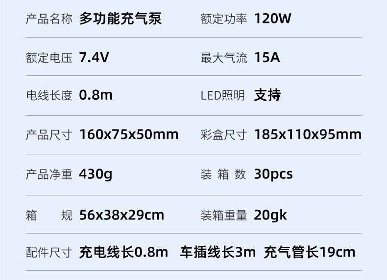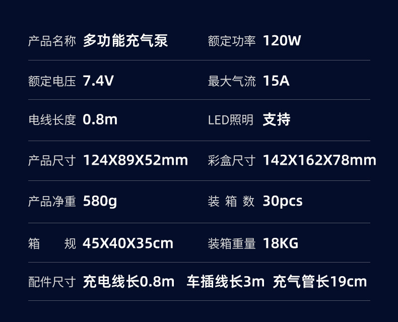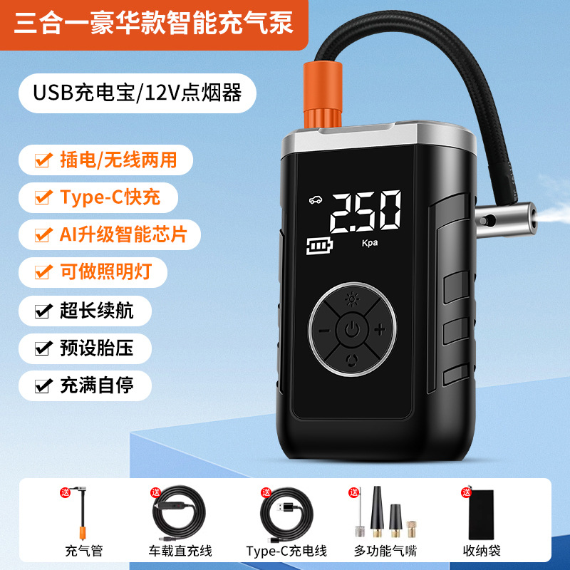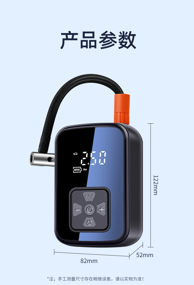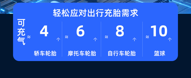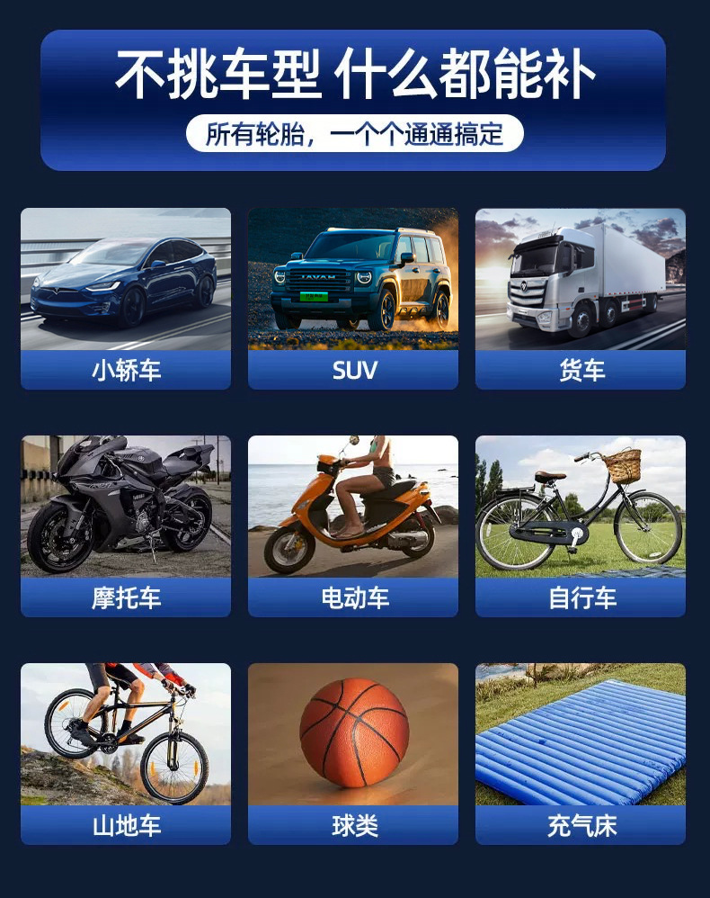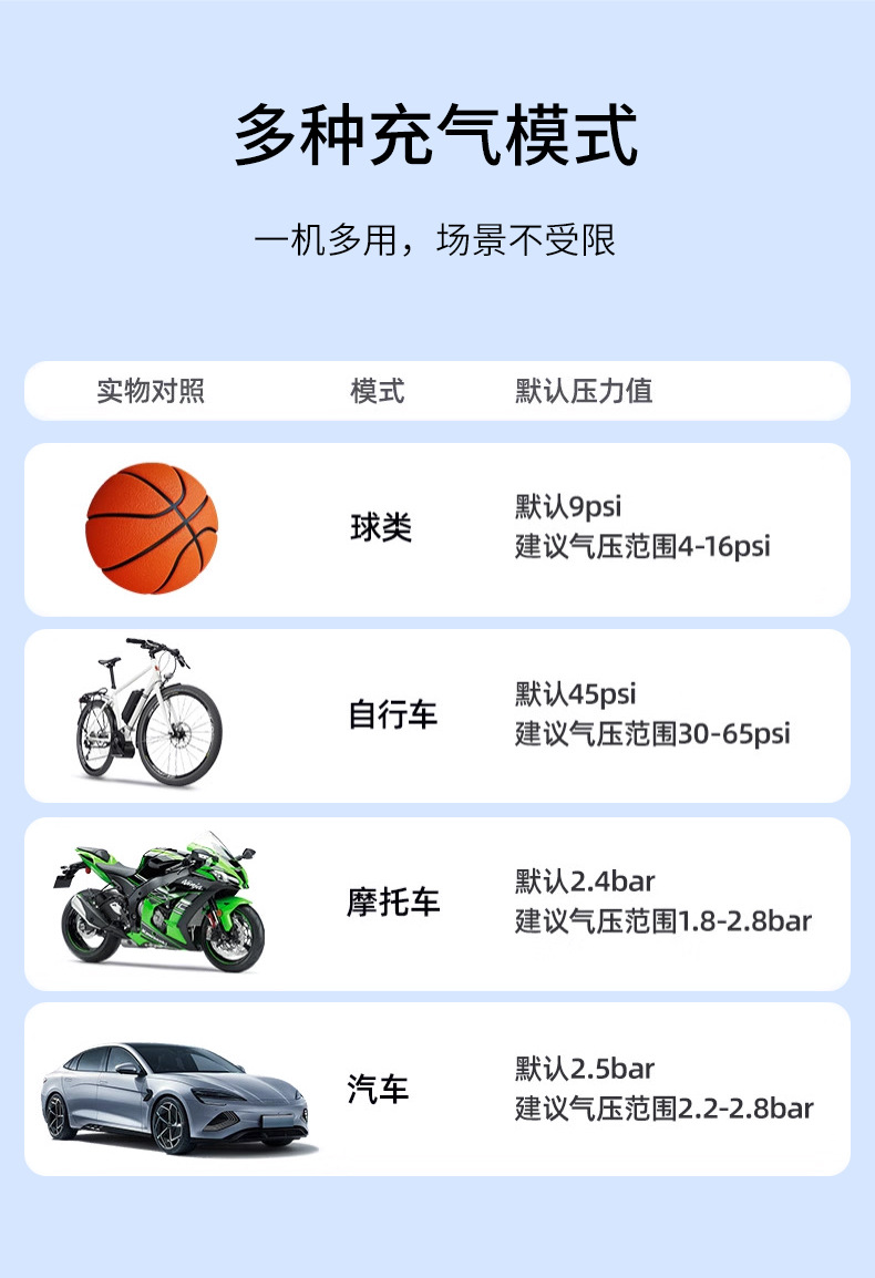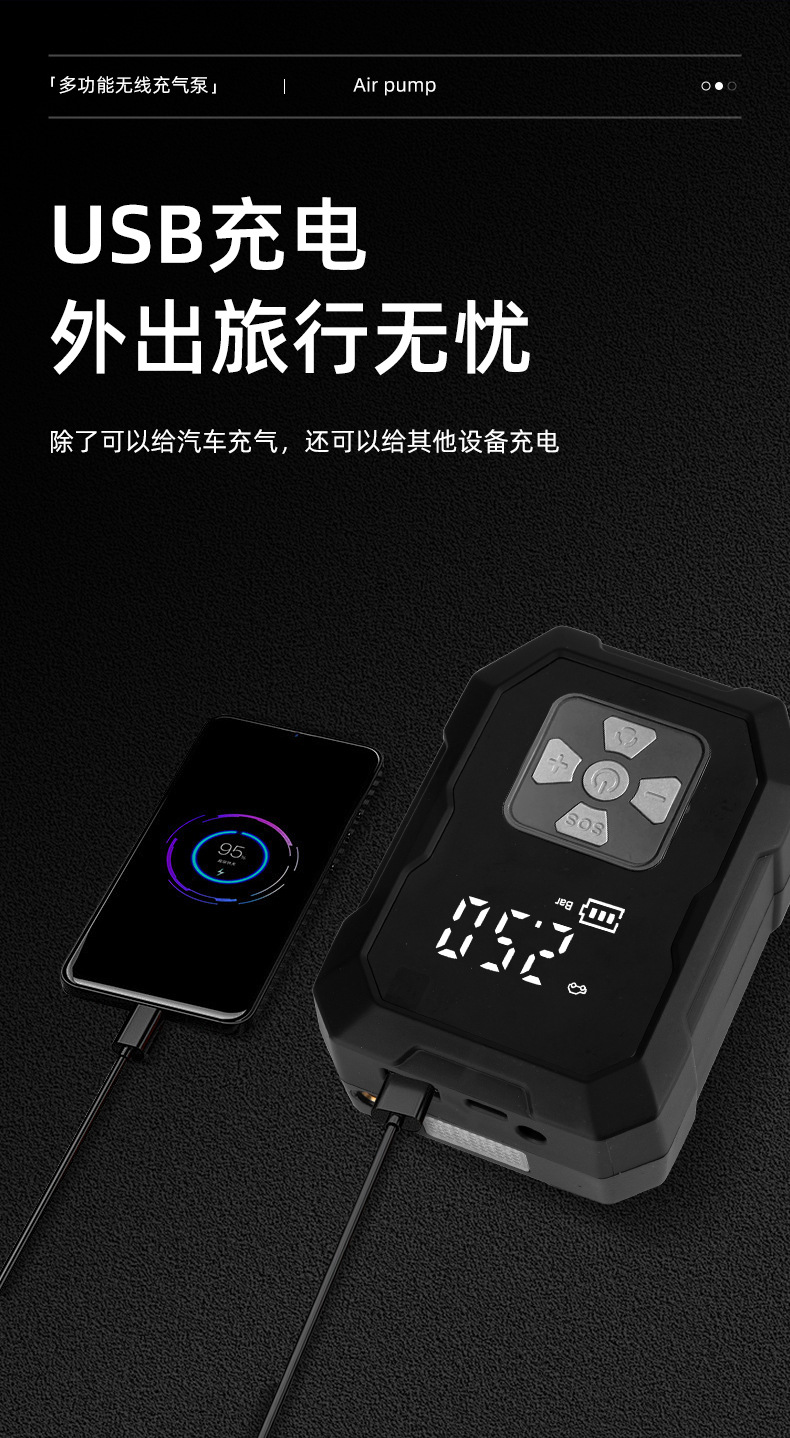 产品介绍:采用19缸直泵机芯,4000毫安18650铝电池。胎压检测,智能数显,一键起动,充满自停。