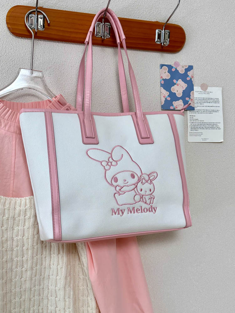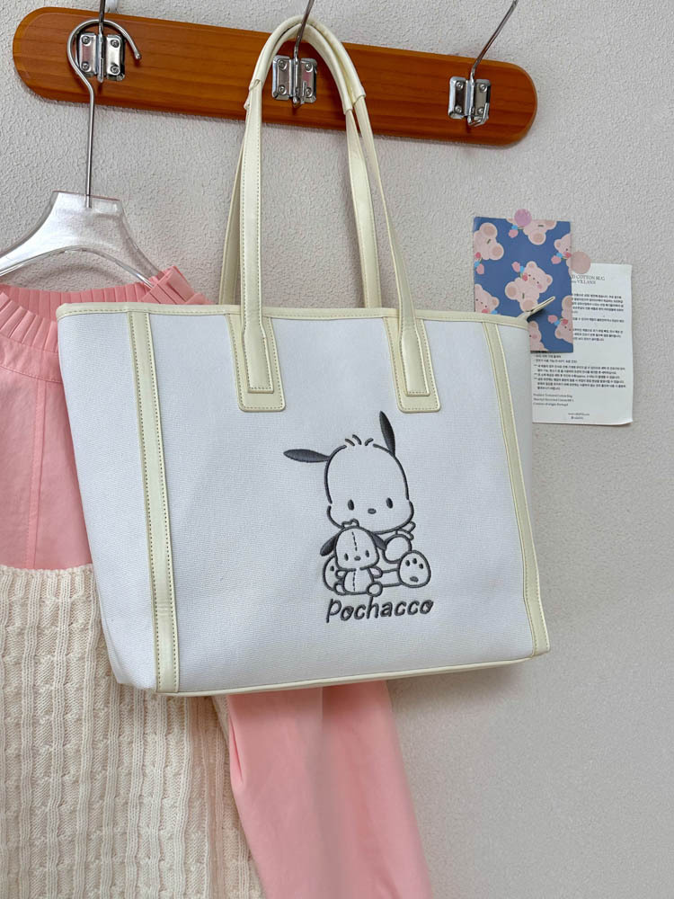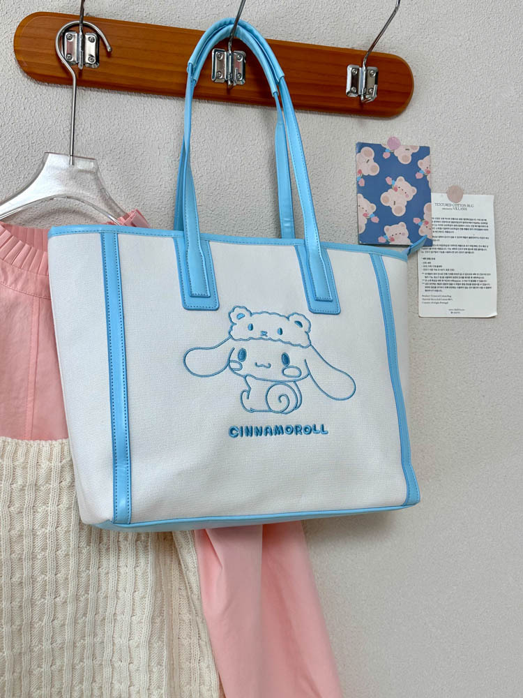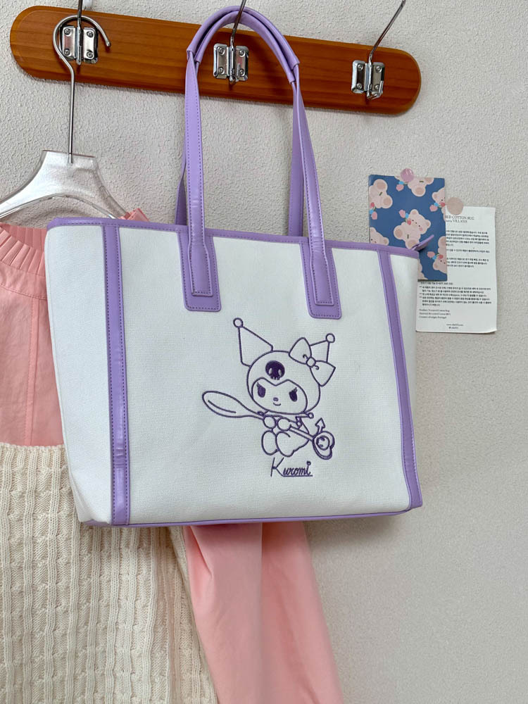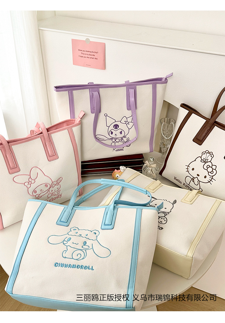 산리오 정품 공인 통근 토트 백 한국 자수 여신 어깨 가방 핸드백 대용량 가방