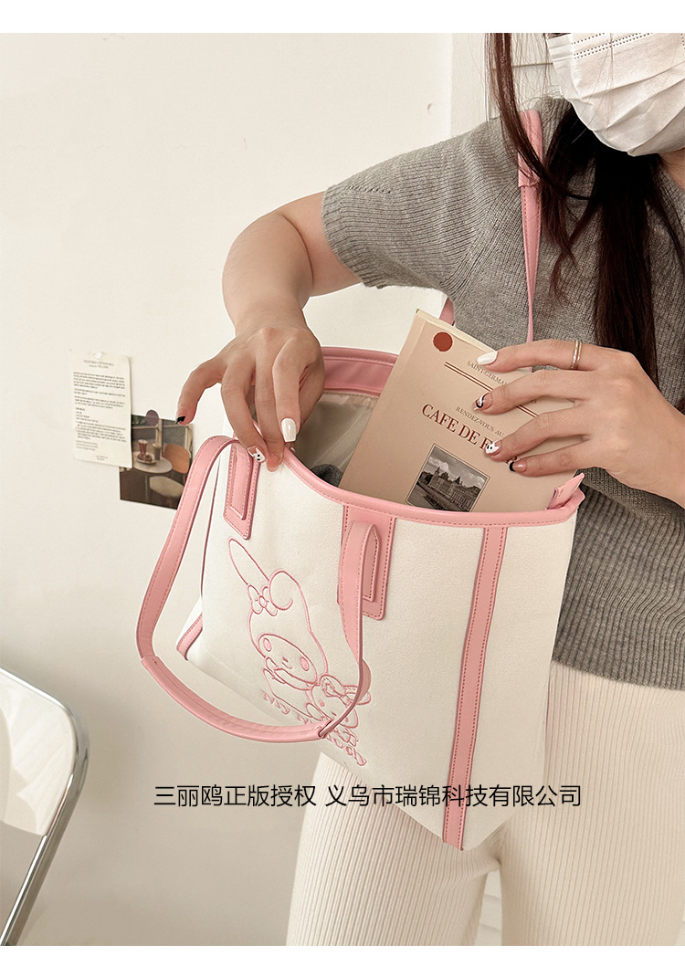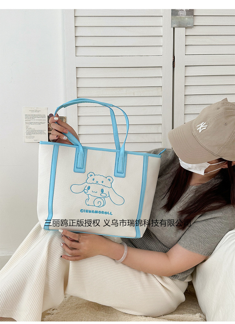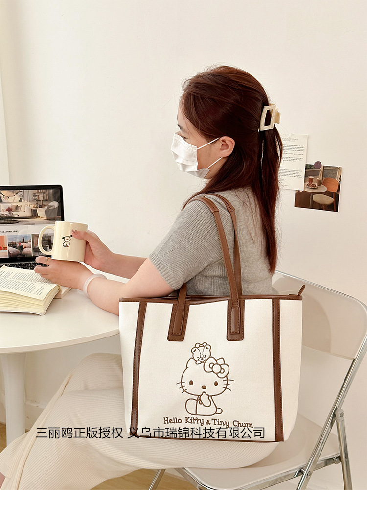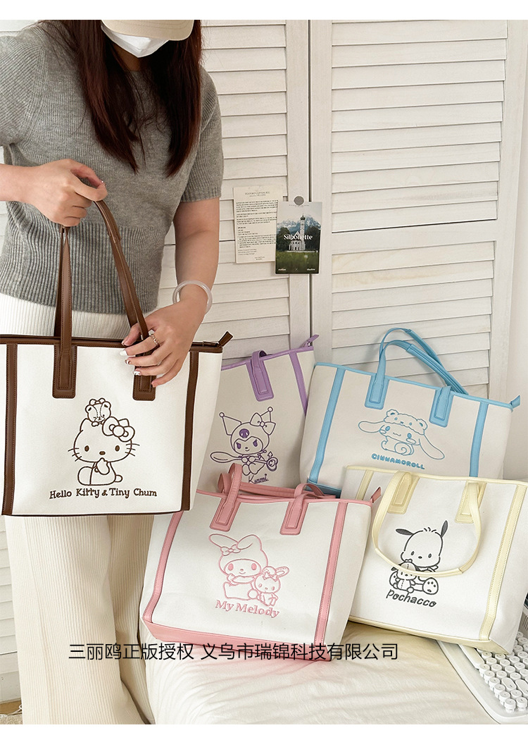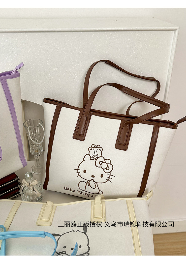 산리오 정품 공인 통근 토트 백 한국 자수 여신 어깨 가방 핸드백 대용량 가방