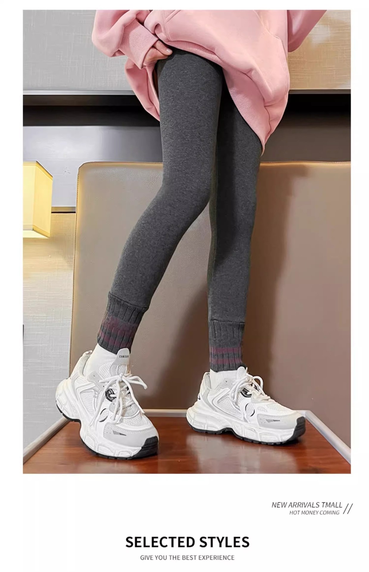 소녀 레깅스 기모 두꺼운 가을과 겨울 한국 스타일 외부 어린이 원피스 벨벳 따뜻한 바지 봄 및 가을 중 큰 어린이 바지 착용