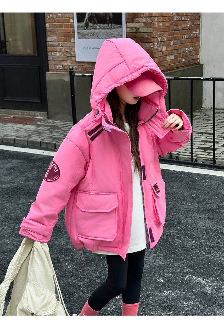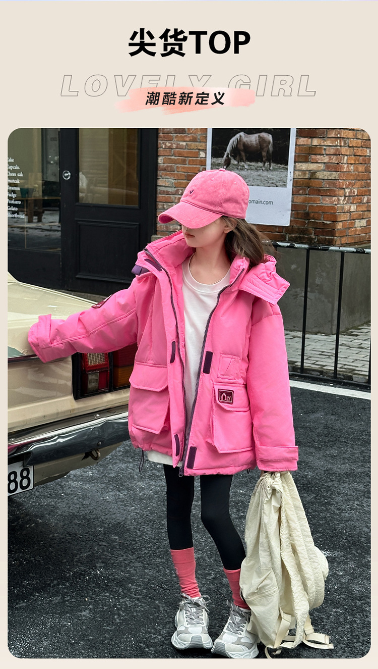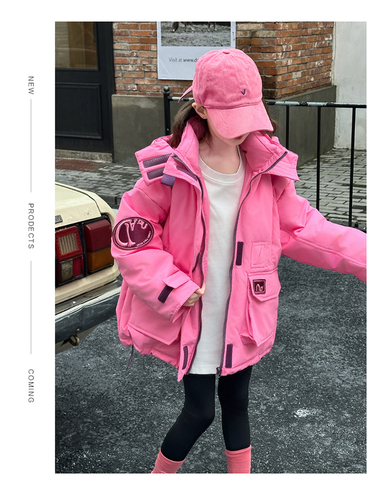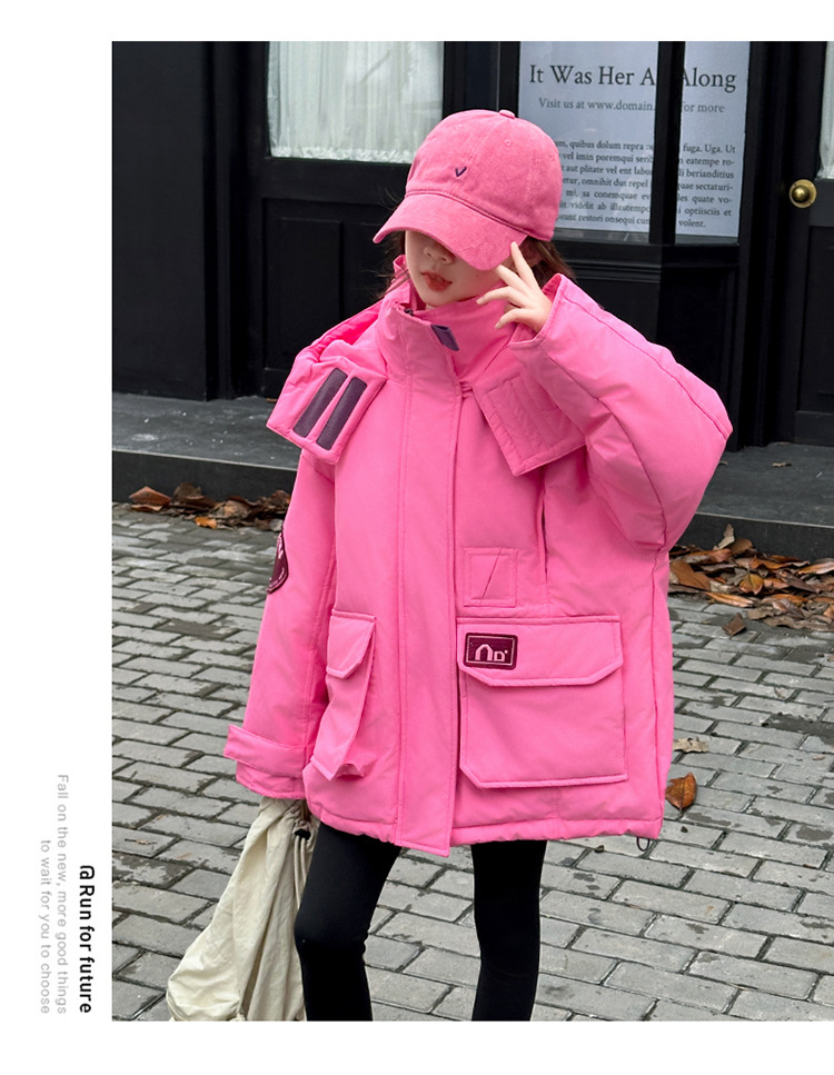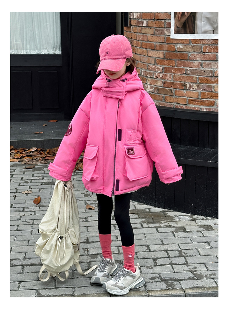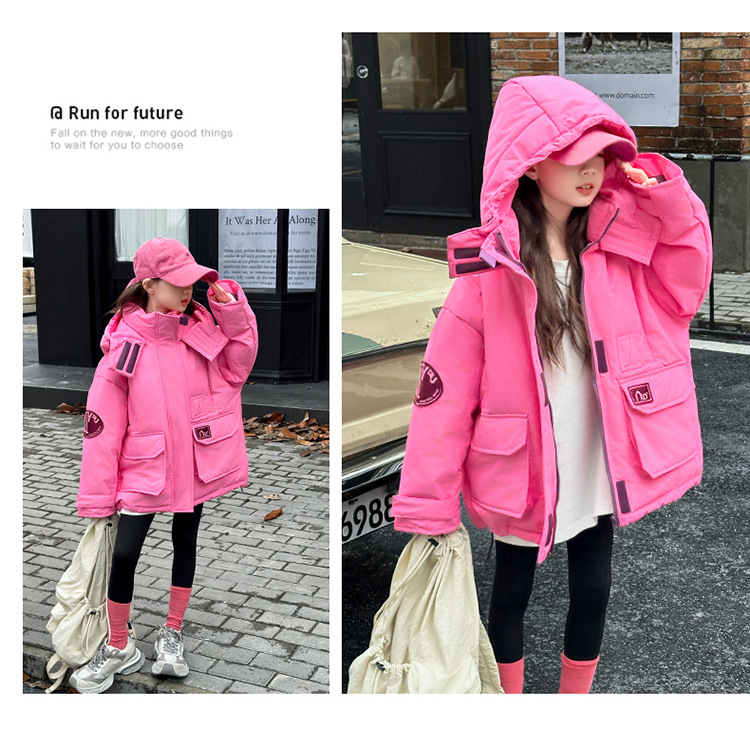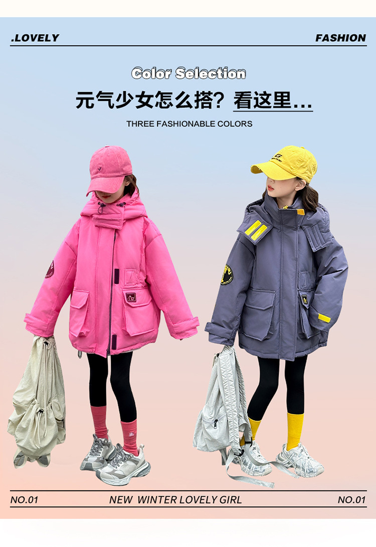소녀 기모 재킷 2024 년 가을과 겨울 새로운 서양식 크고 큰 어린이 면화 의류 아동용 두꺼운 파이크 옷 겨울면-패딩 코트스토어 가기