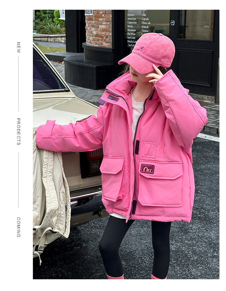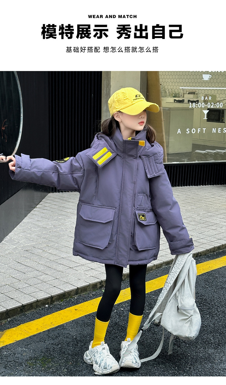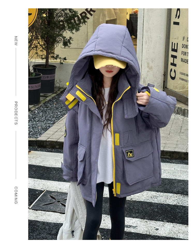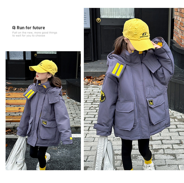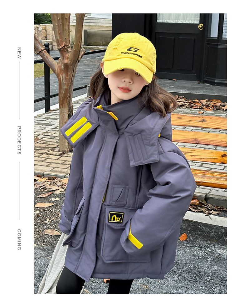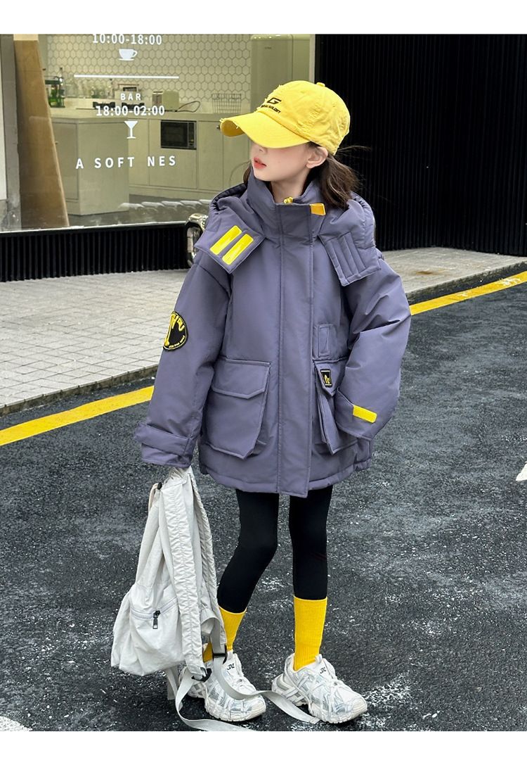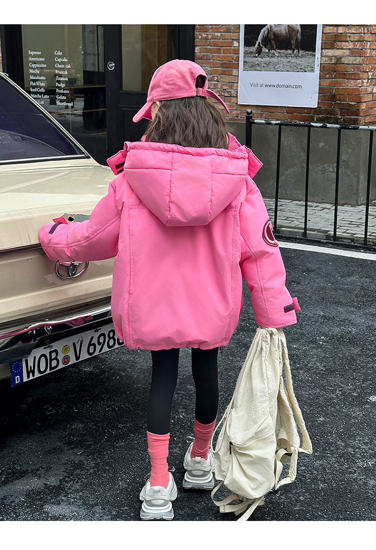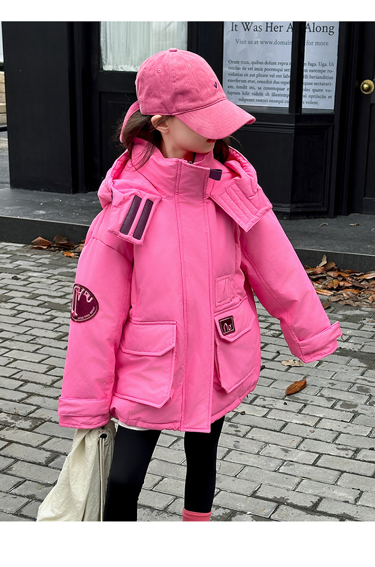 소녀 기모 재킷 2024 년 가을과 겨울 새로운 서양식 크고 큰 어린이 면화 의류 아동용 두꺼운 파이크 옷 겨울면-패딩 코트스토어 가기