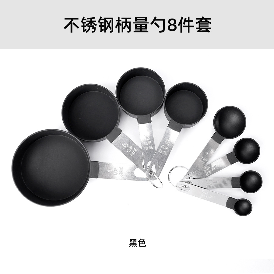 不锈钢柄量勺8件套:17*9cm、140(±5)g、不锈钢+pp材质