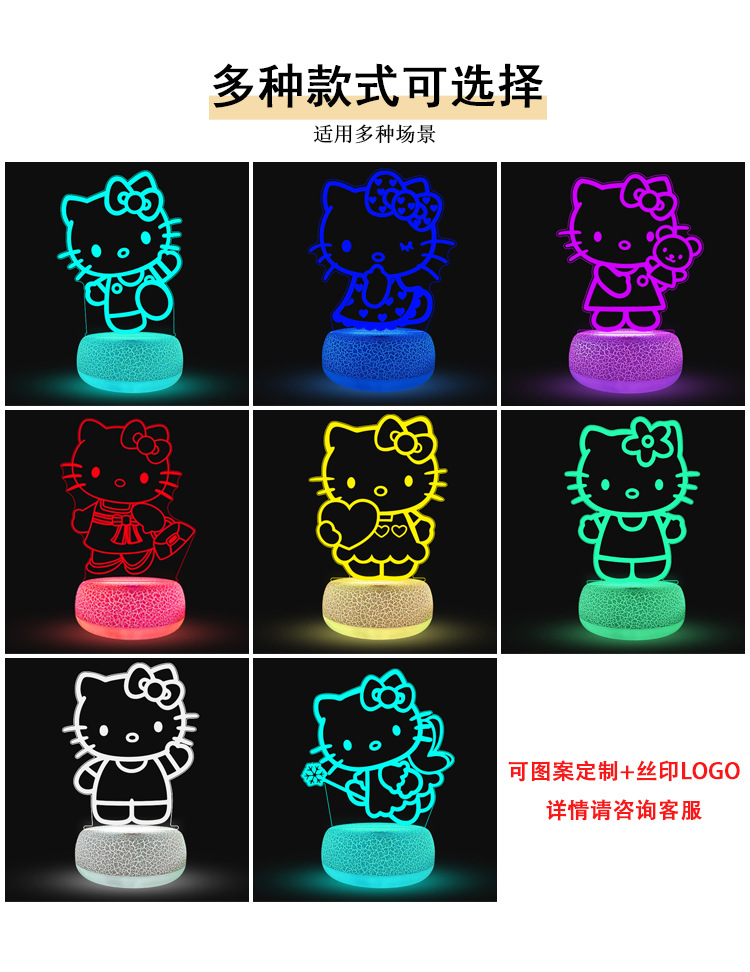 해외 직구 헬로키티 3D 무드등 침실 침대 옆 분위기 아크릴 램프 크리스마스 선물 무드등 도매