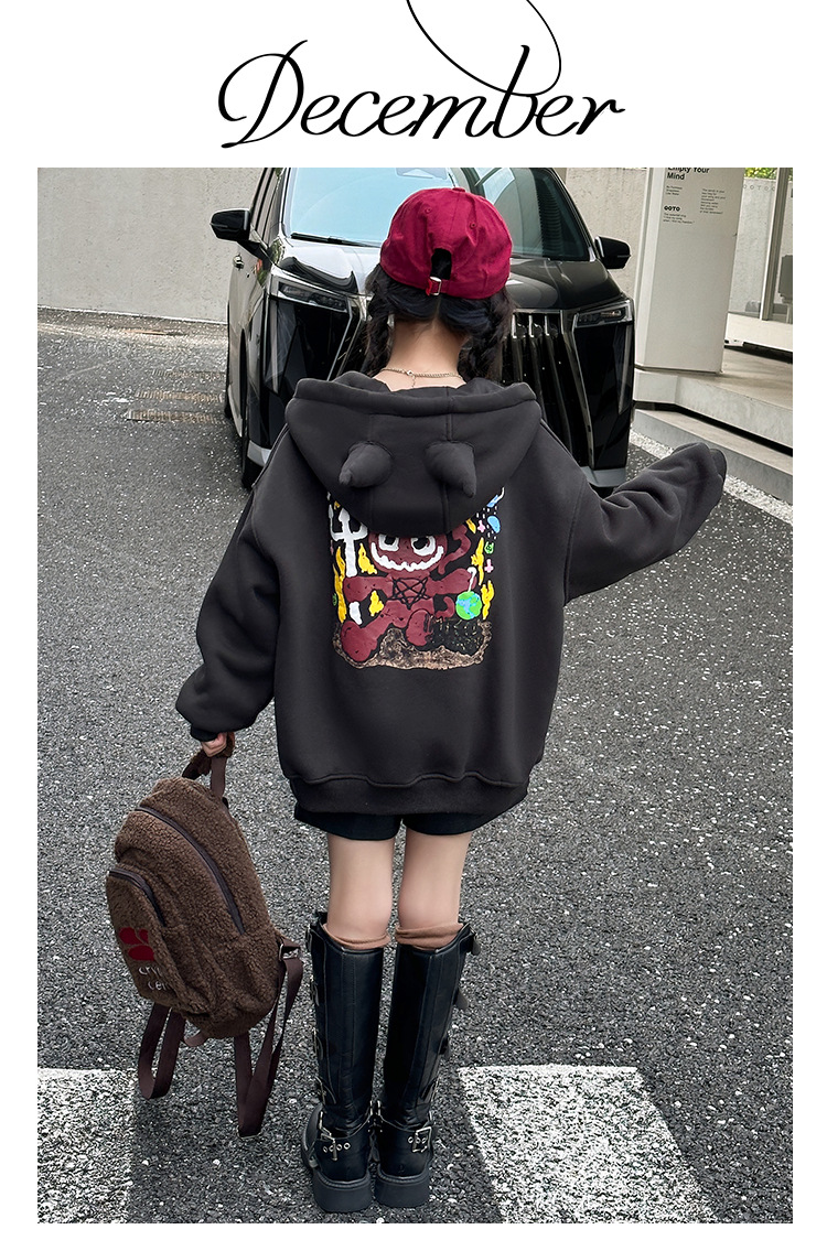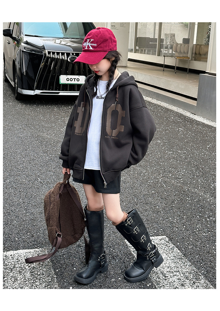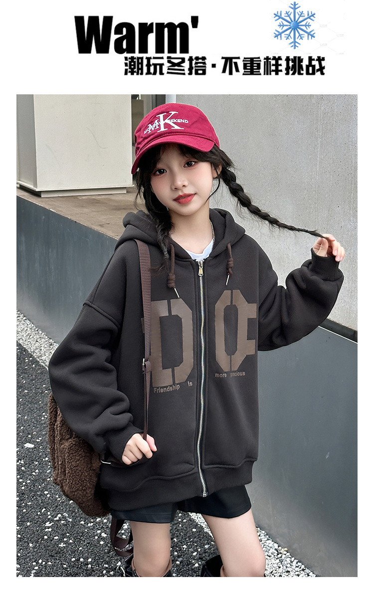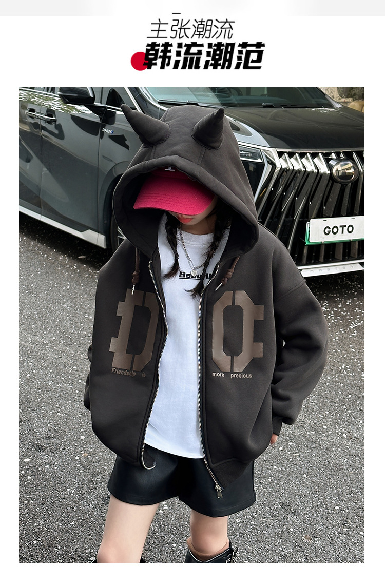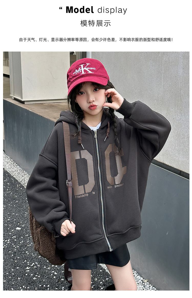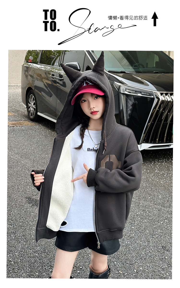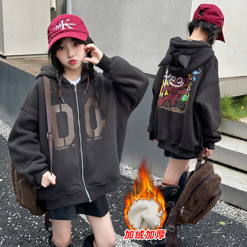 소녀 카디건 기모 스웨터 2024 깊은 가을과 겨울 어린이 코트 중 큰 어린이 두꺼운 만화 최고 트렌디스토어 가기