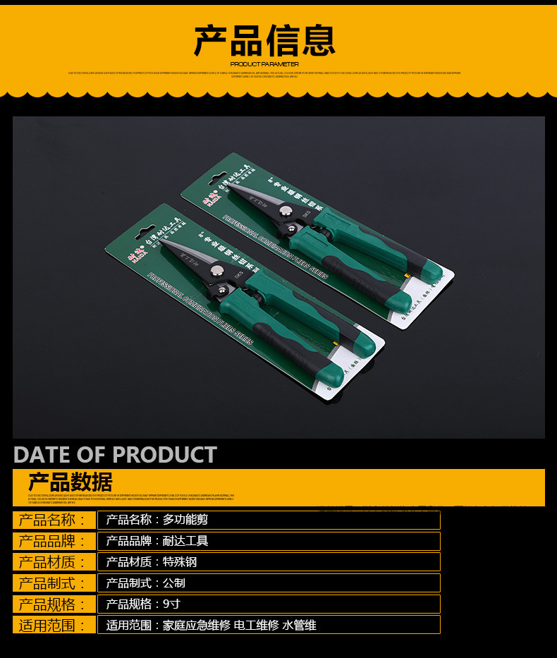 네이다 크롬 바나듐 강철 8inch 다용도 철판 가위 제조업체 PVC 테이프 케이블 트레이 전기공 가위 도매스토어 가기