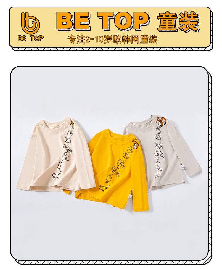Betop 어린이 긴팔 티셔츠 소년 바지 셔츠 도매 한국 만화 인쇄 아동복 스웨터 헤어 세대스토어 가기