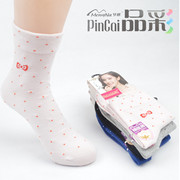正品梦娜品彩 秋冬精梳棉女士蝴蝶结点点卡通棉袜 无骨袜子批发