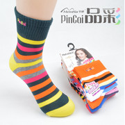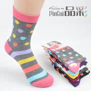 正品梦娜品彩 秋冬精梳棉女士圆点 条纹拼色棉袜 无骨袜子批发