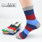 梦娜品彩 男士秋冬精梳棉条纹拼色男士时尚休闲运动袜 纯棉男袜