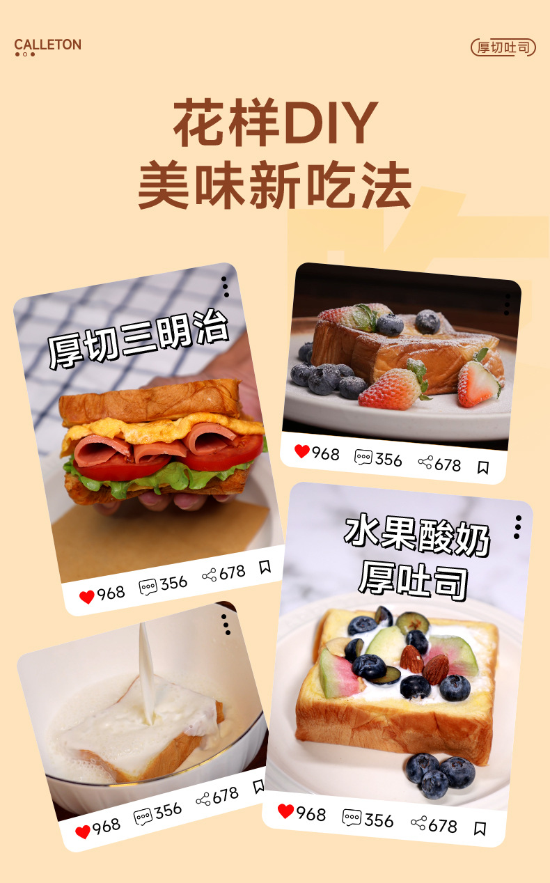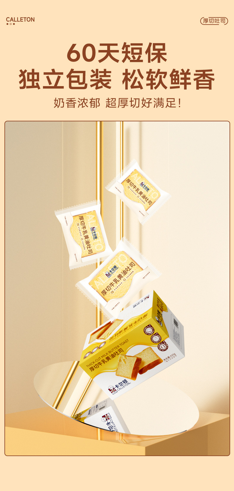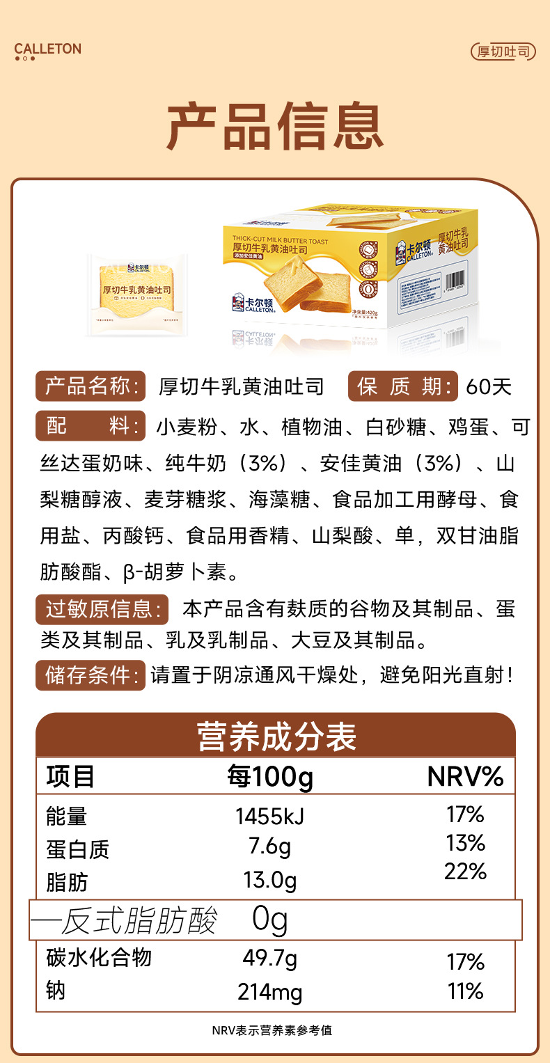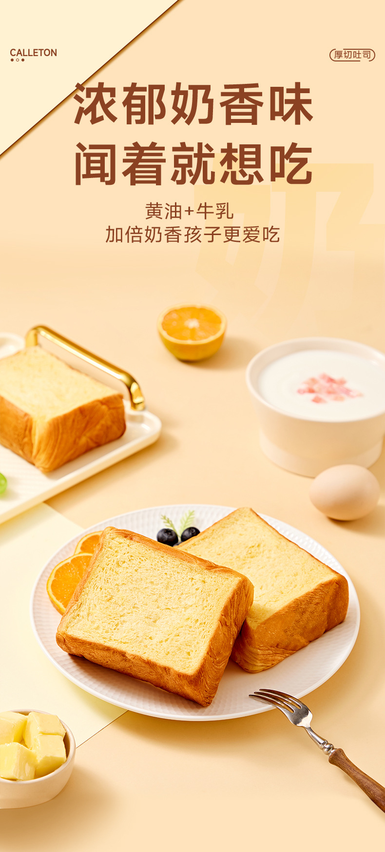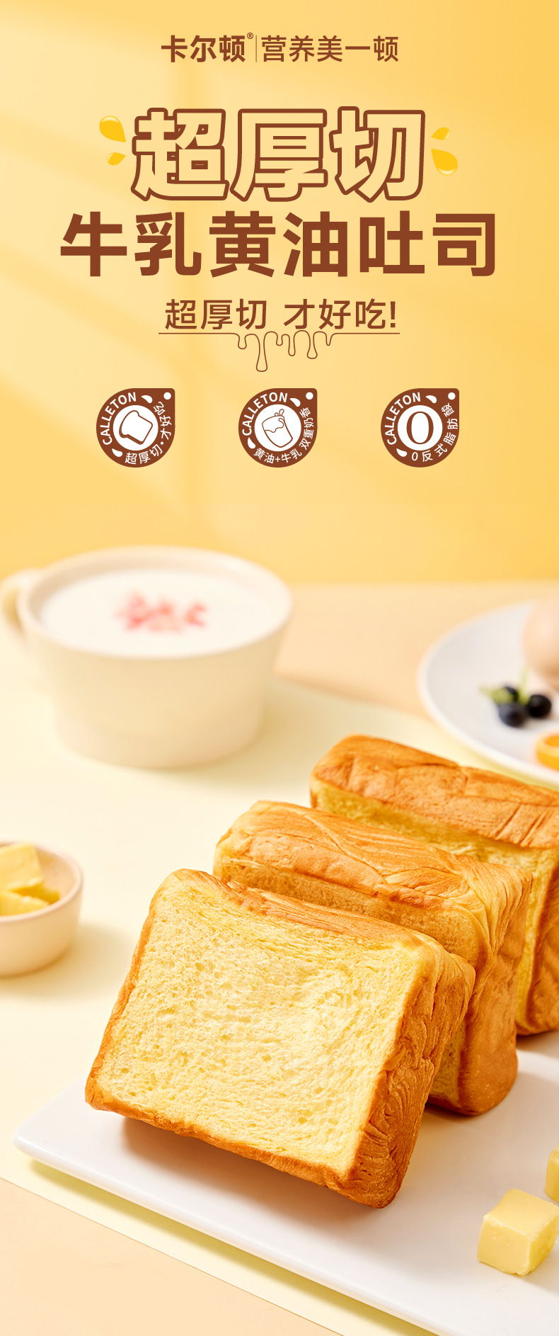 칼튼 두꺼운 컷 밀크 버터 토스트 버팔로 밀크 빵 영양가있는 건강한 아침 식사 스낵 식품 패스트리 전체 상자스토어 가기
