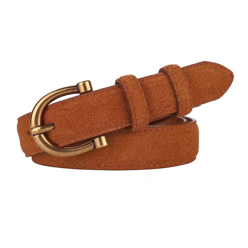 인기있는 추천 여성용 Cowhide 벨트 새로운 간단한 올 매치 데님 벨벳 캐주얼 하이 엔드 소형 벨트