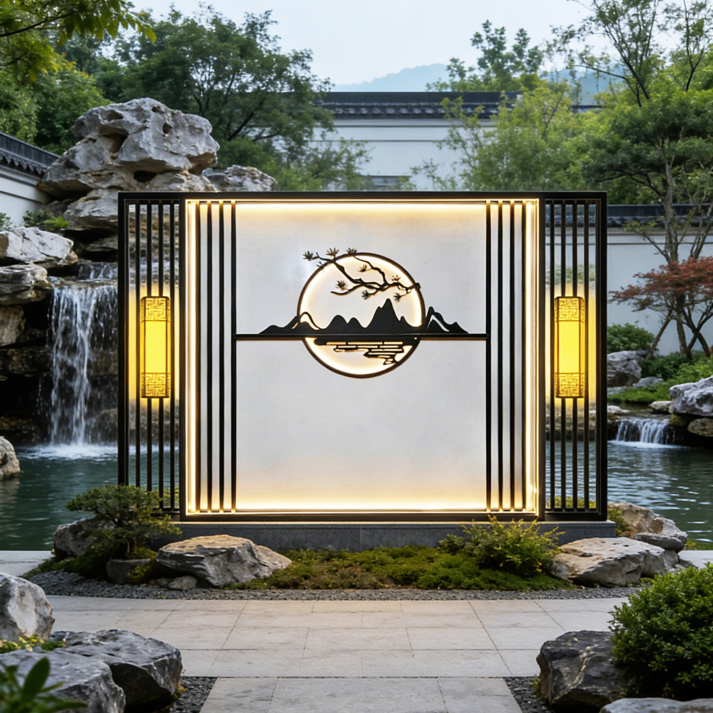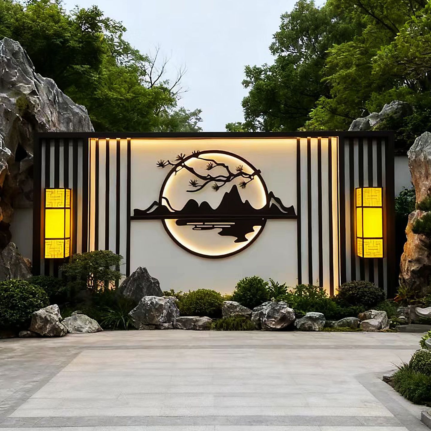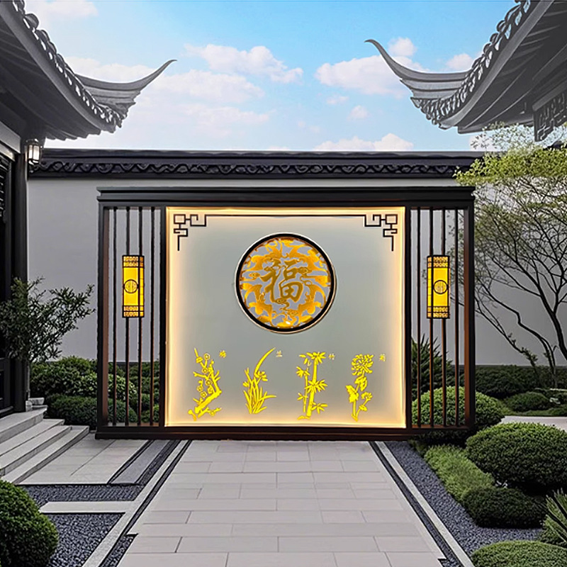 맞춤형 스테인리스 스틸 그림자벽, 새로운 중국식 정원 입구 칸막이, 조경벽, 야외 정원 금속 현관 스크린