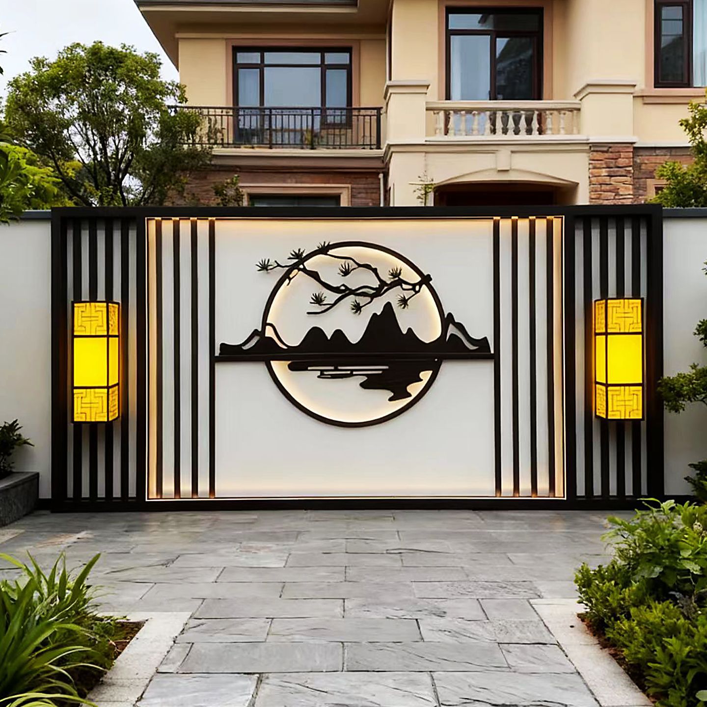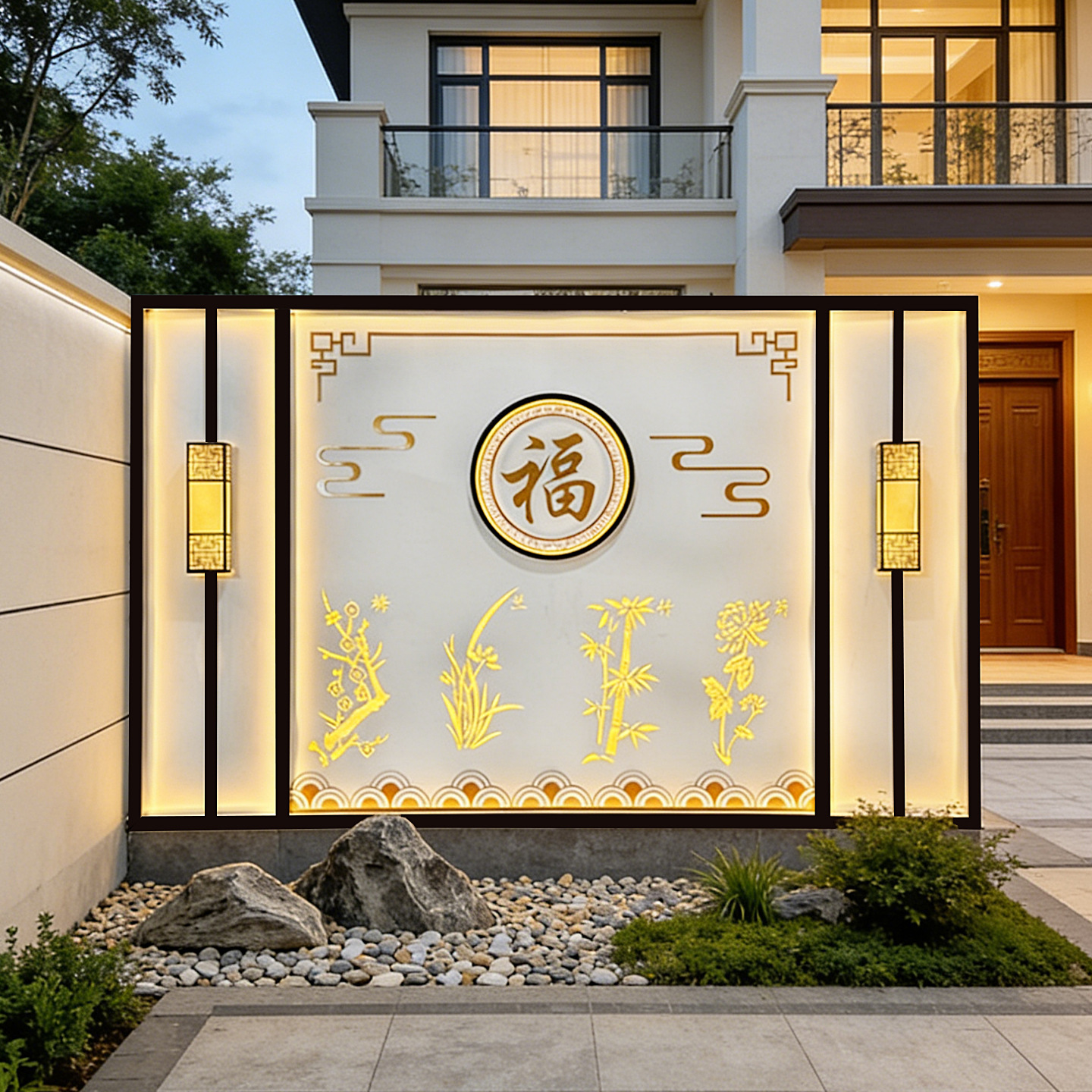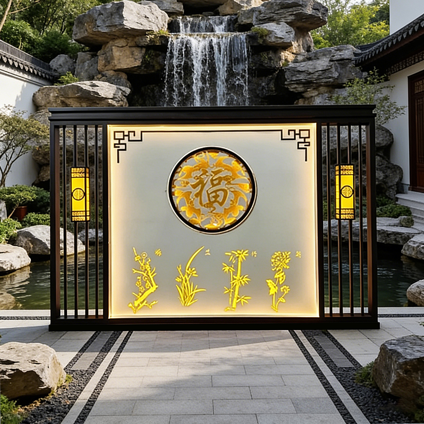 맞춤형 스테인리스 스틸 그림자벽, 새로운 중국식 정원 입구 칸막이, 조경벽, 야외 정원 금속 현관 스크린