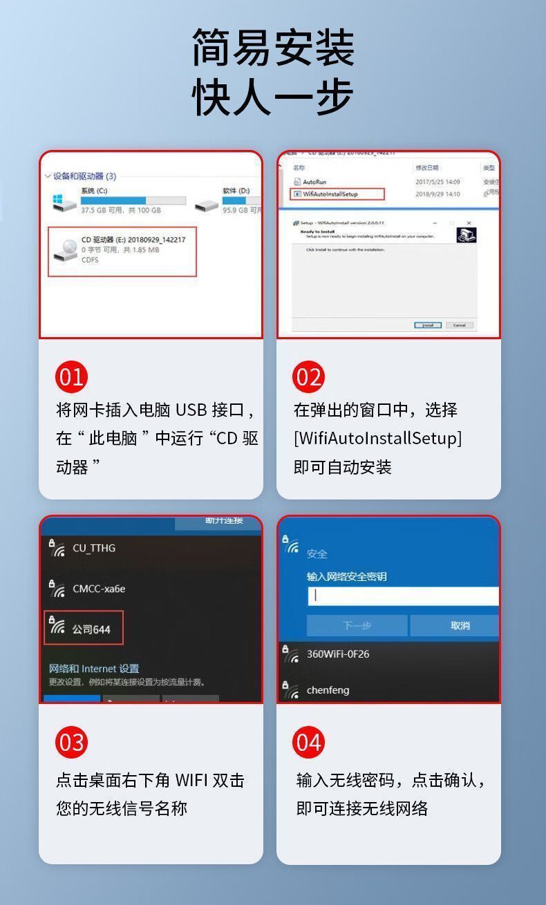 7601 네트워크 카드 무선 네트워크 카드 USB 미니 컴퓨터 풀 세트 데스크탑 와이파이 네트워크 수신기 및 송신기 크로스보더스토어 가기