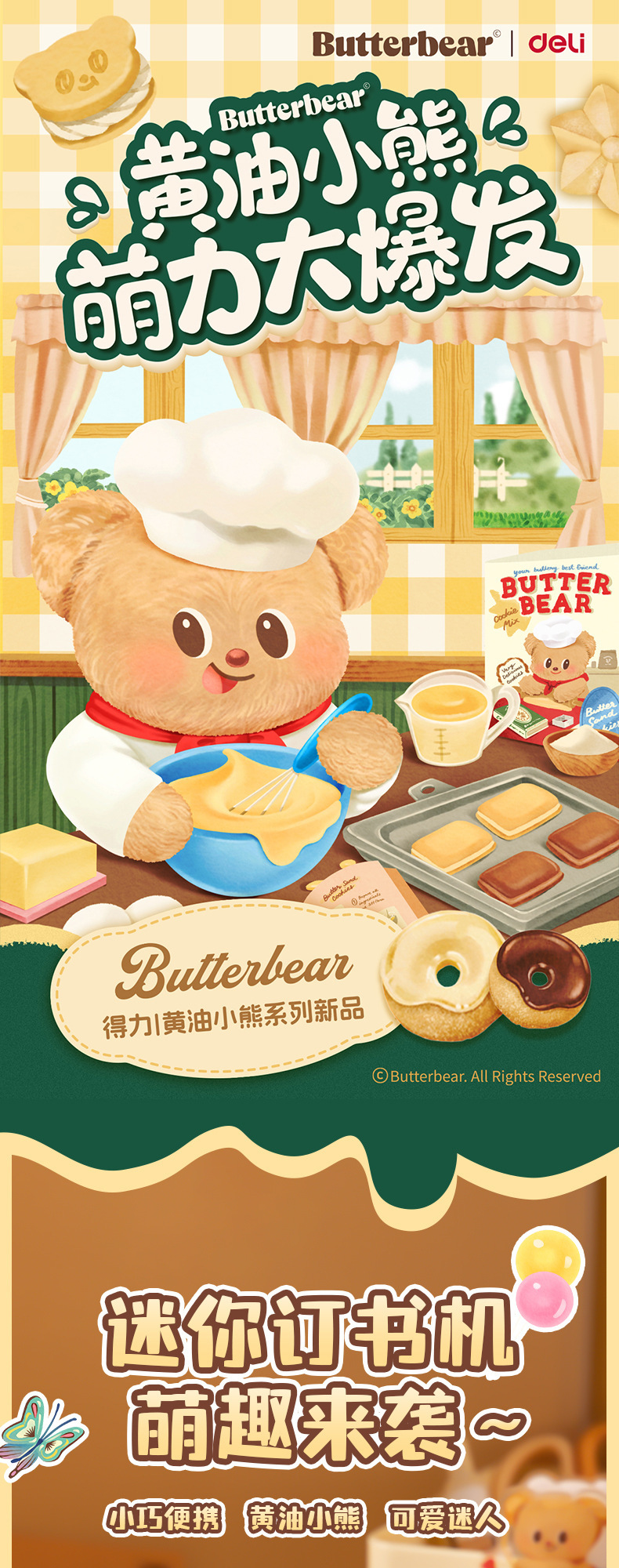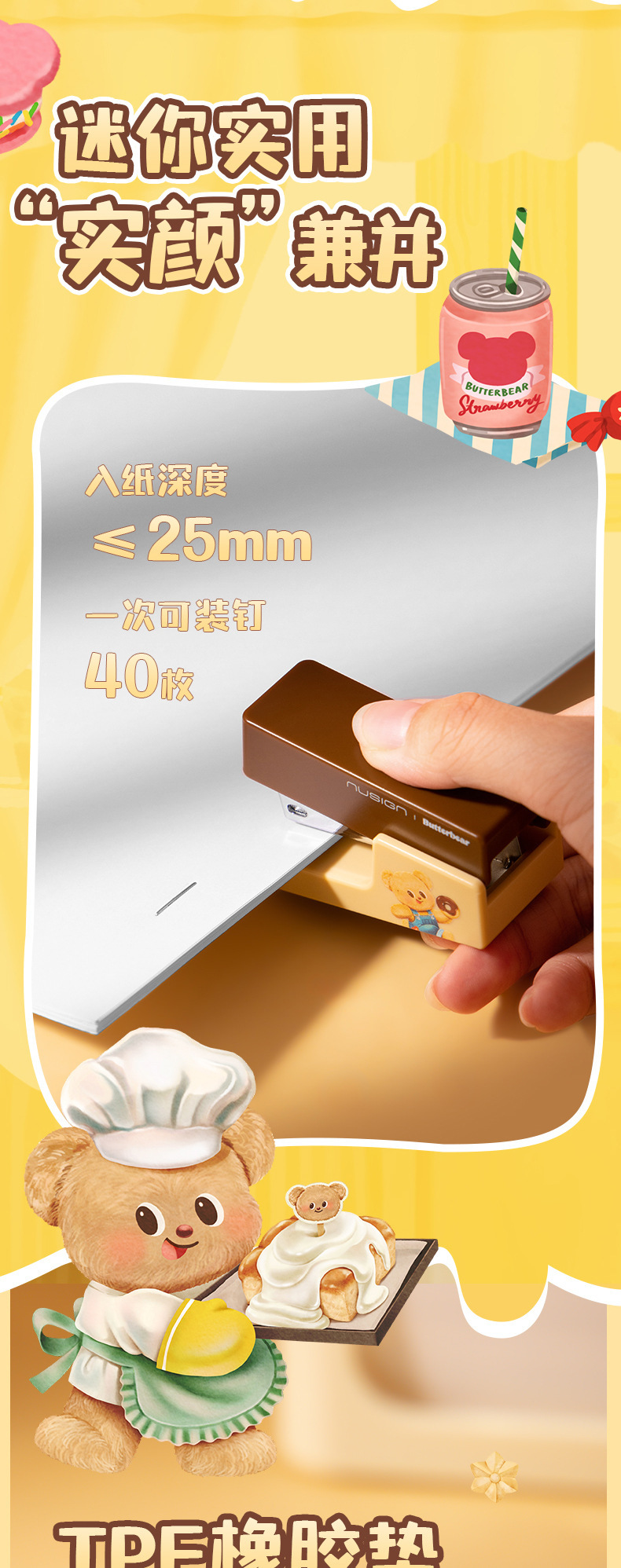 델리 NS083-B 버터 베어 조인트 뉴시 미니 스테이플러 학생용 소형 휴대용 스테이플러