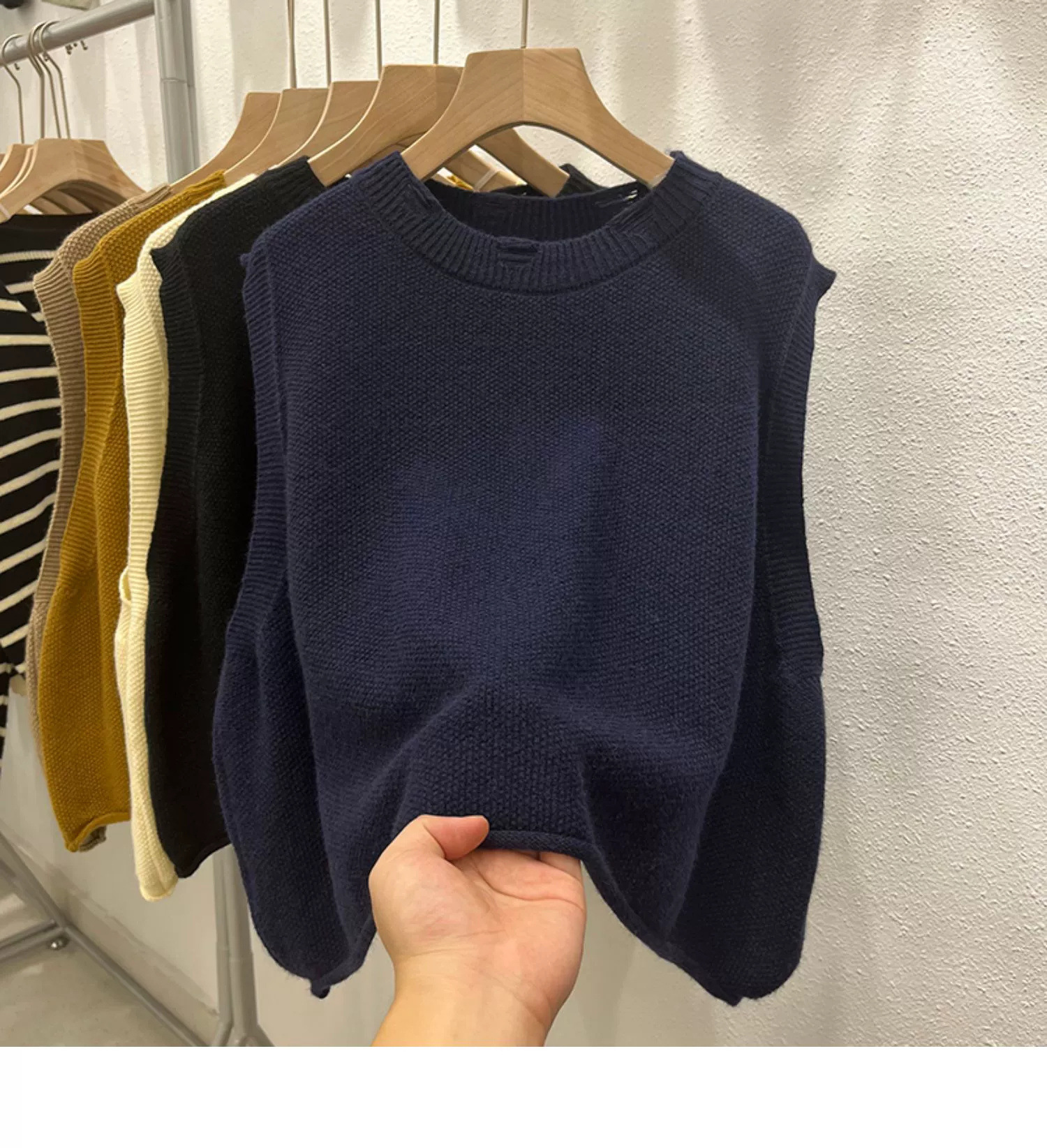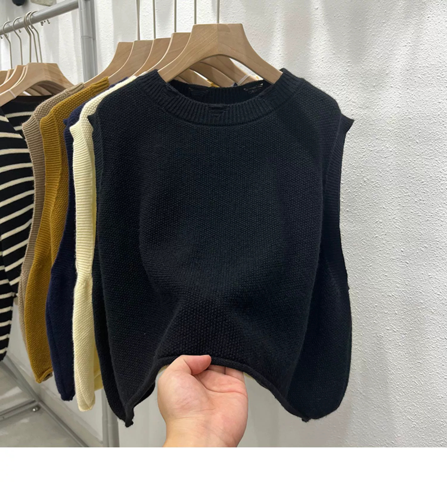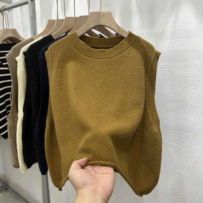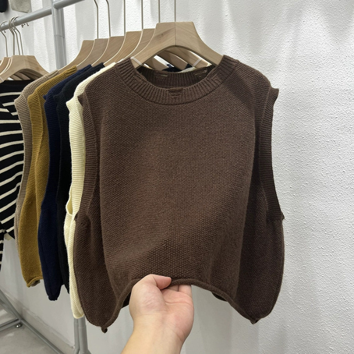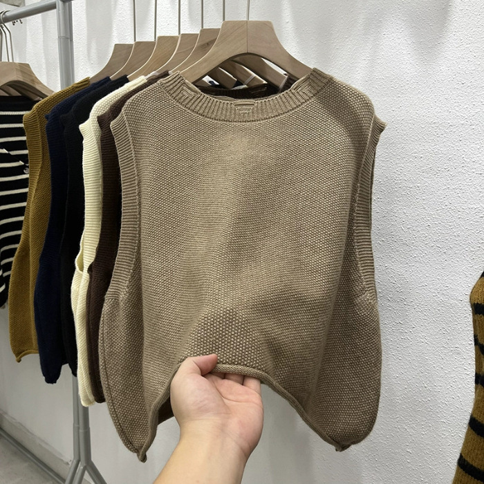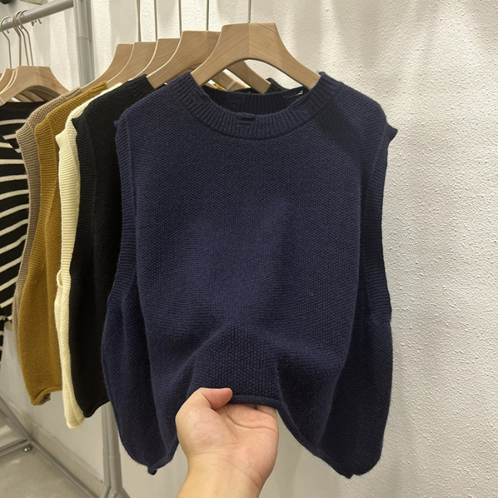 크루 넥 홀 니트 조끼 여성 가을 겨울 새로운 2024 한국 스타일 느슨한 디자인 올매치 민소매 스웨터 조끼스토어 가기