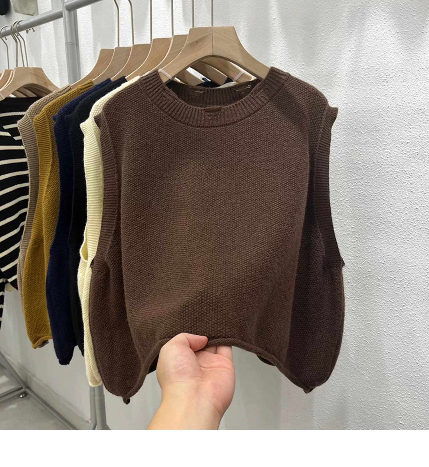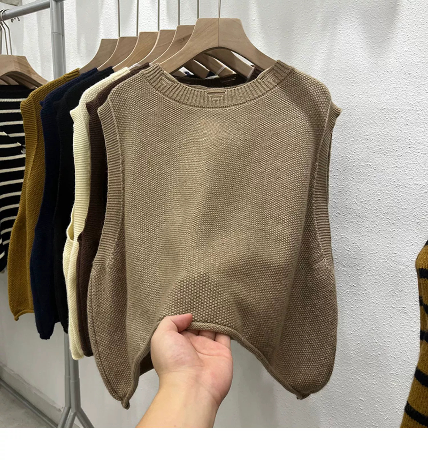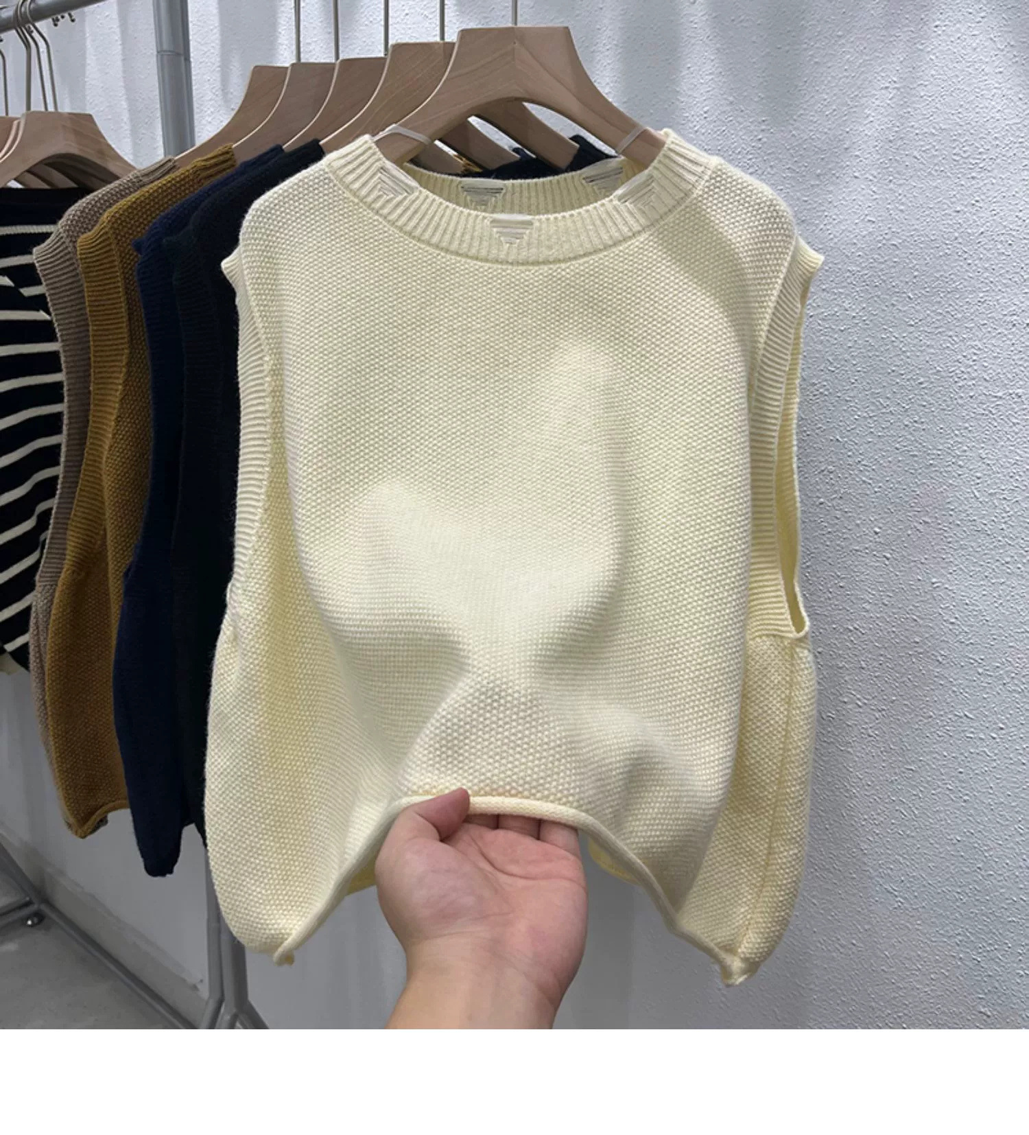 크루 넥 홀 니트 조끼 여성 가을 겨울 새로운 2024 한국 스타일 느슨한 디자인 올매치 민소매 스웨터 조끼스토어 가기