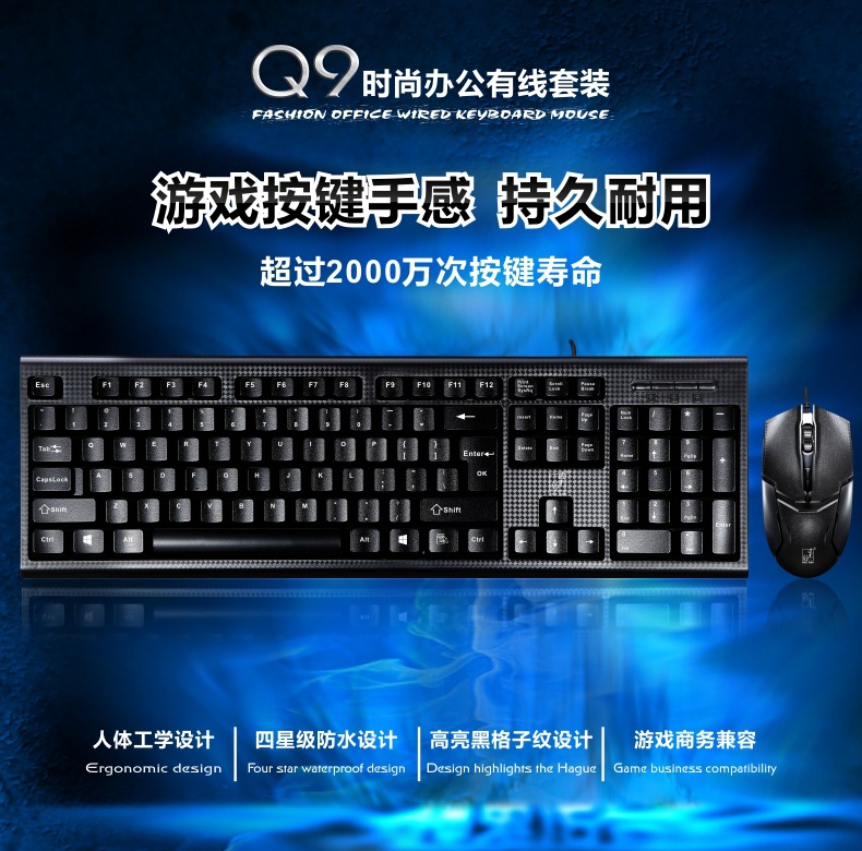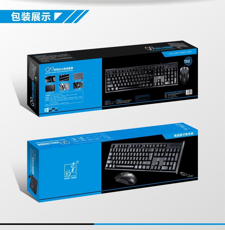 Chuang Guangbao Q9 USB 키보드 및 마우스 세트 유선 사무실 컴퓨터에 키보드 및 마우스 세트 액세서리 제조 업체 도매스토어 가기